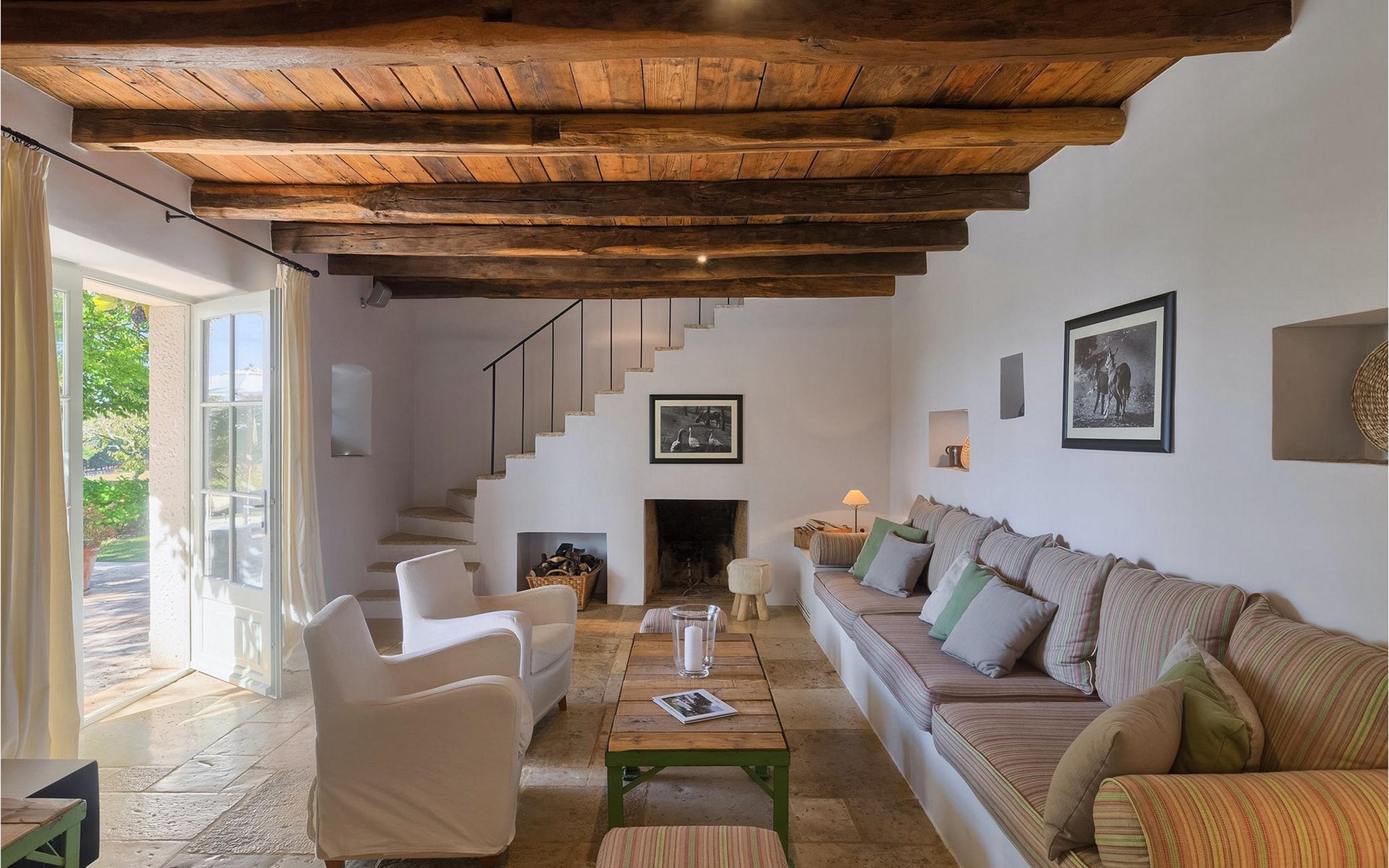 The interior of the villa is tastefully decorated, with high-quality furniture and attention to detail. The first floor is dominated by a spacious, open room divided into living, dining and cooking areas. The natural, pastel-colored furniture goes hand in hand with the balcony doors, which provide plenty of light in the room. If you take a look at the comfortable sofa next to the elegant fireplace, you will be overcome with the desire to sink into it in the company of a book or an aperitif. There is also a separate toilet on the first floor. Three elegantly furnished, cozy bedrooms with double beds, each with an en-suite bathroom, are located on the upper floor - two on the second floor and one on the second floor.
