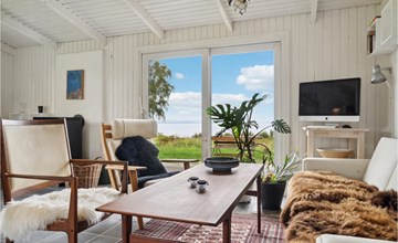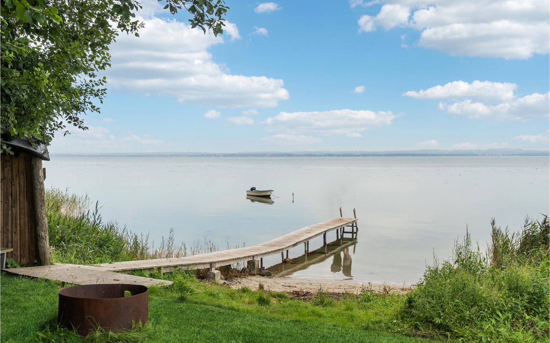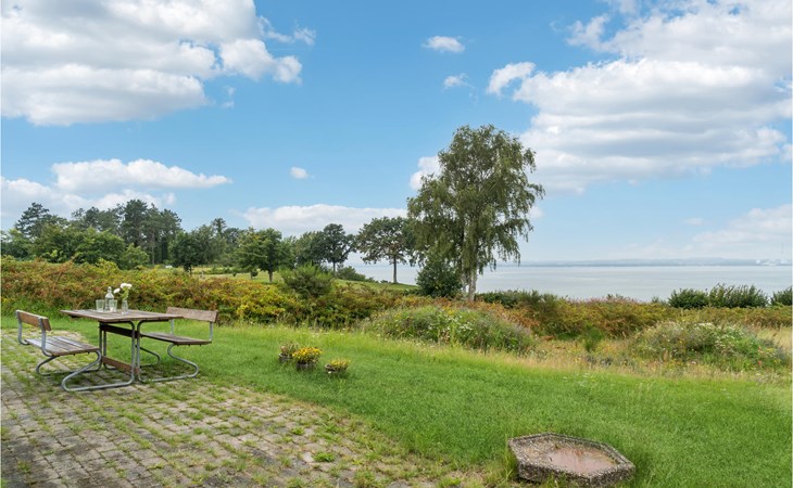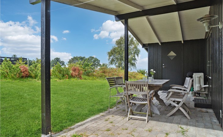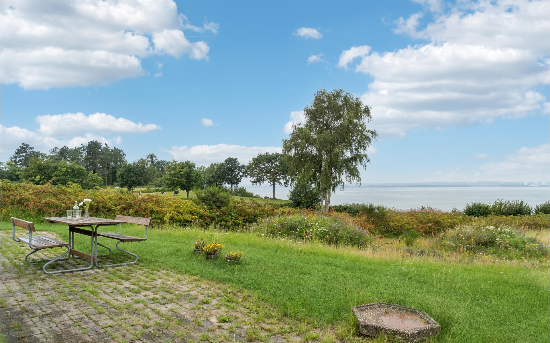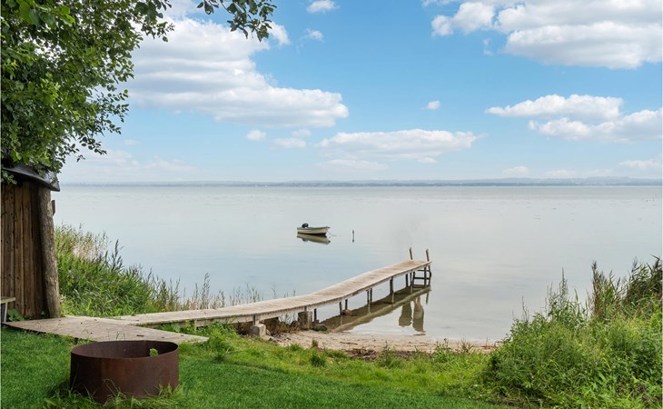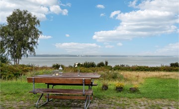 On the covered terrace you can spend wonderful hours outdoors. Make yourself comfortable with a cup of coffee on the picnic bench and let the view wander far over the water.