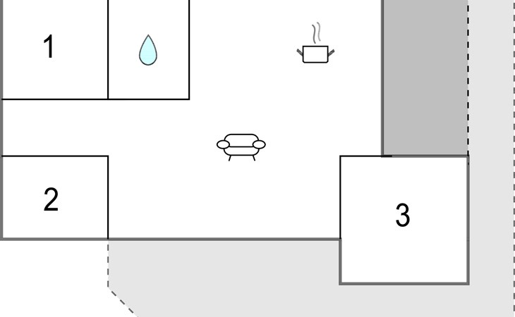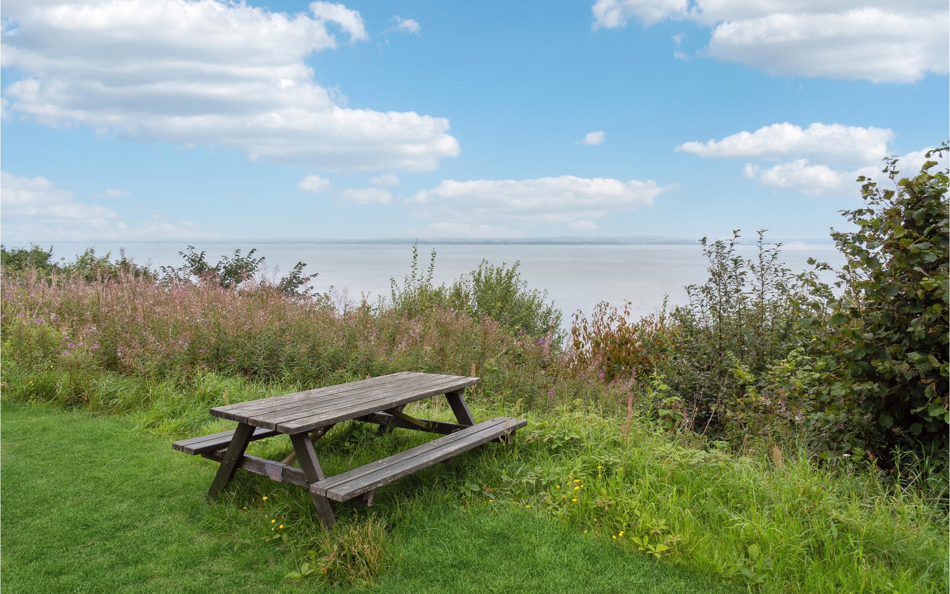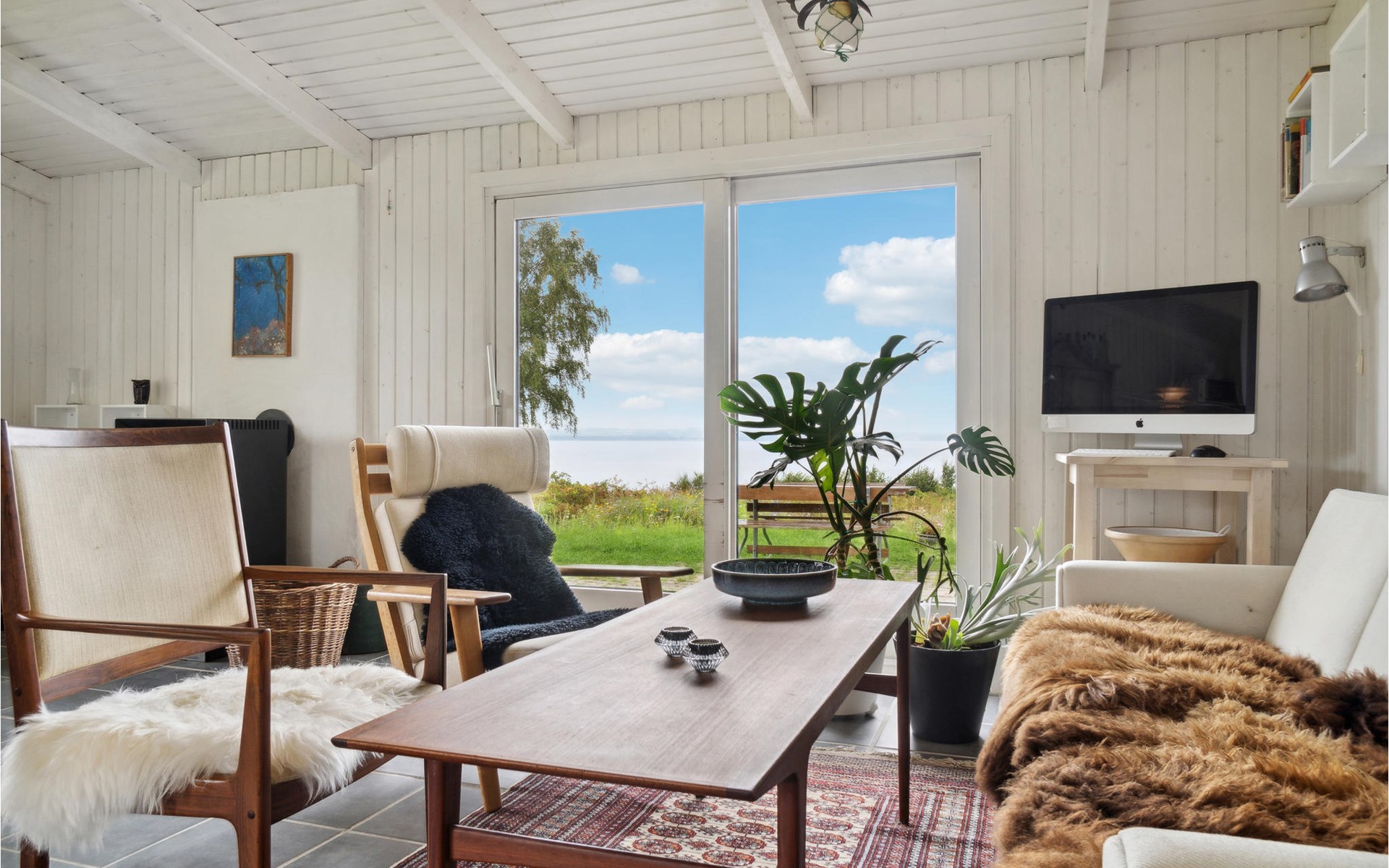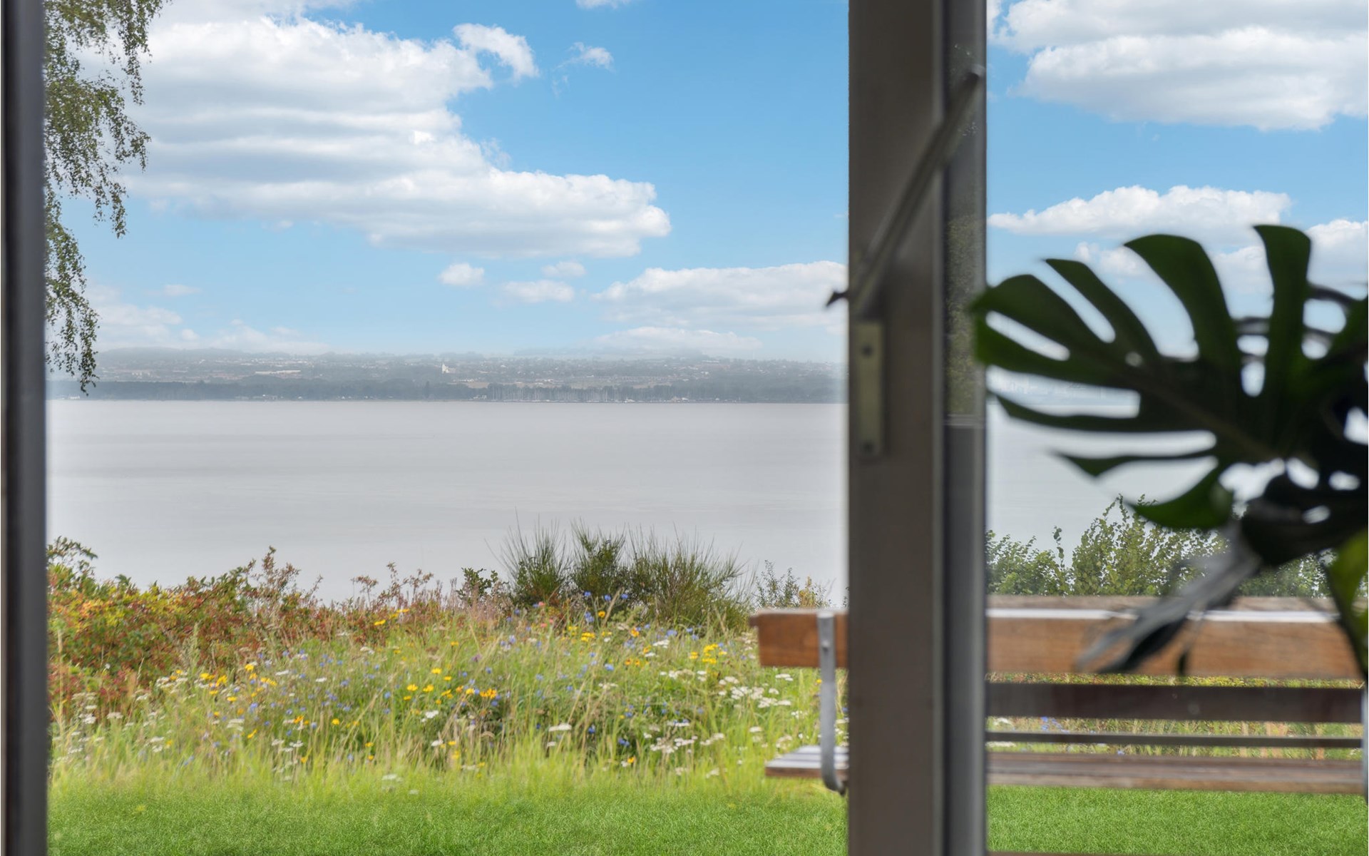On the covered terrace you can spend wonderful hours outdoors. Make yourself comfortable with a cup of coffee on the picnic bench and let the view wander far over the water.