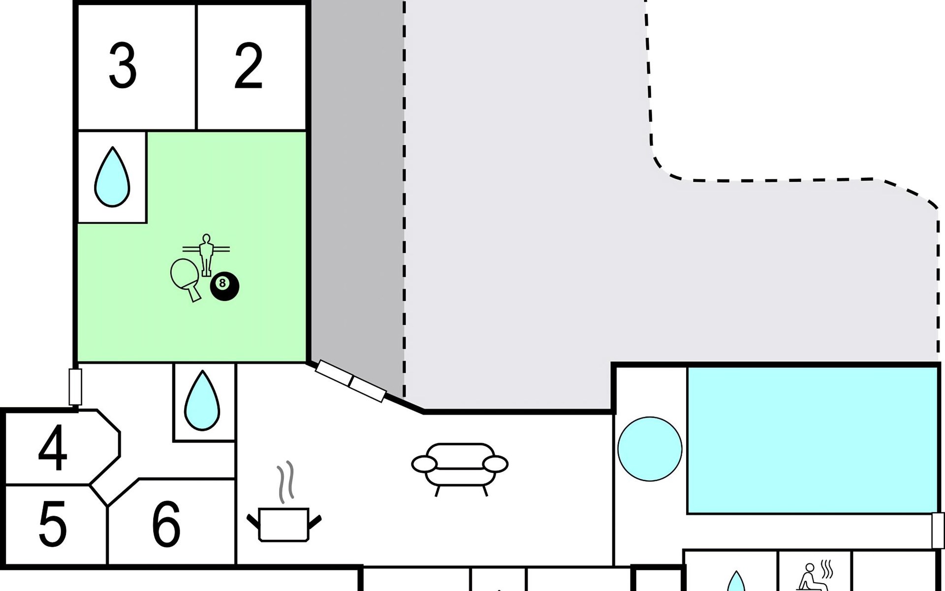 A beautiful home on manicured garden grounds a short walk from the long white beach. Modern furnishings, interesting design and plenty of space let you relax with your family or friends. The large, bright eat-in kitchen has clerestory windows that provide light-filled spaces. All 7 bedrooms and the 2 suspended floors are equipped with comfortable beds, or mattresses. Entertainment is provided in the activity room and pool area for several hours daily. Beautiful vacations are possible here at any time.