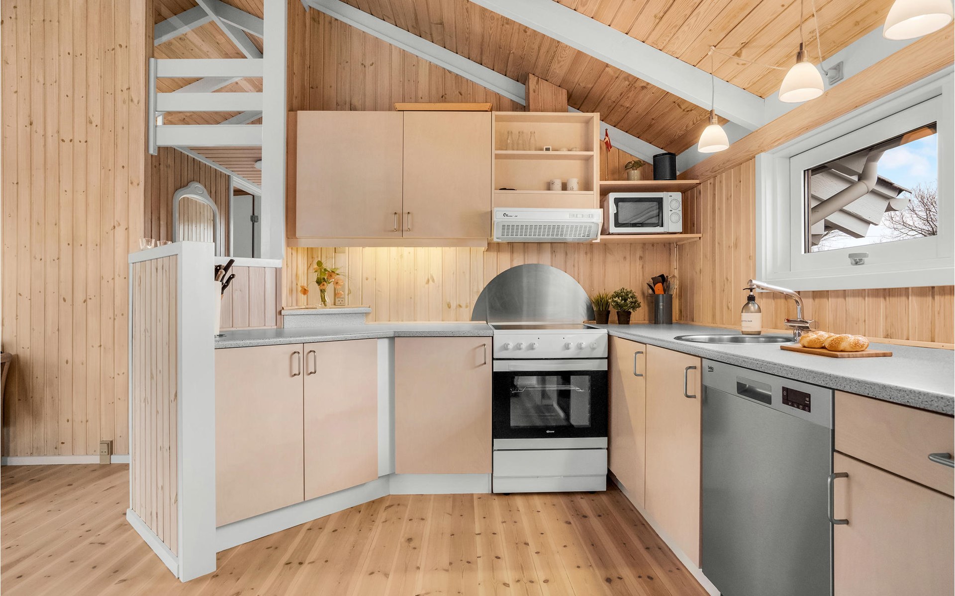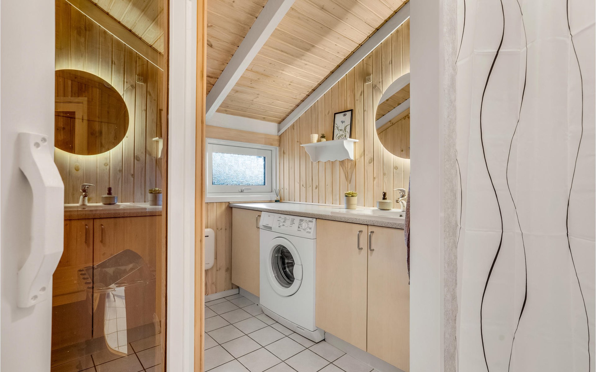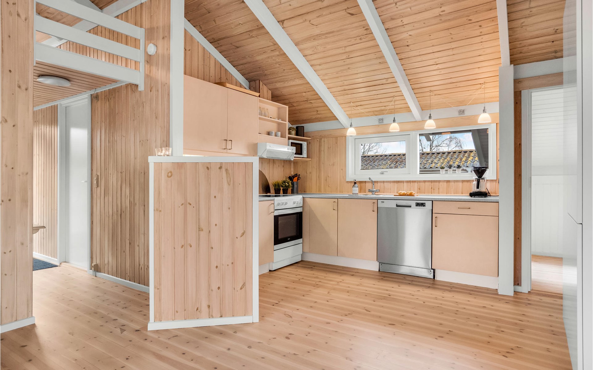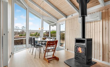 The charming wooden house welcomes you in a beautiful quiet location. The bright rooms form the ideal setting for a nice time together in a homely ambience. Large windows let plenty of daylight into the rooms. Dine with a wonderful view of the outdoors and relax in the in-house sauna. After an eventful day, the comfortable sofa invites you to a movie or game night, here you can sit together comfortably for a long time while the flames crackle in the fireplace.
