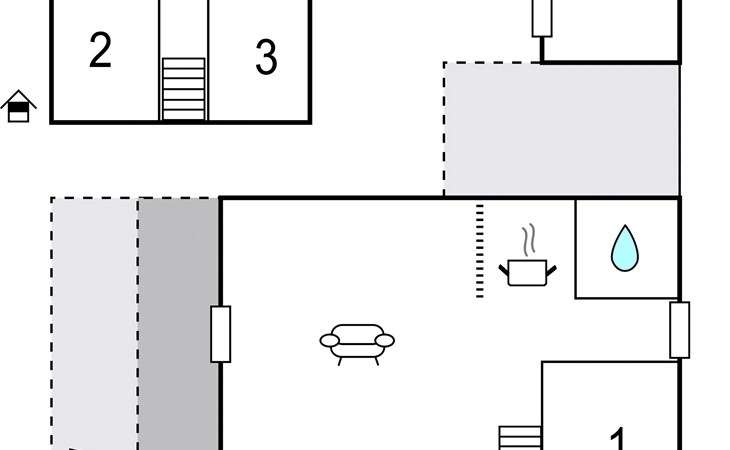The house consists of 3 bedrooms, 1 bathroom and an open kitchen with dining and living area. From here you have access to the partially covered terrace, where you can look forward to your morning coffee or a glass of wine on warm summer evenings.