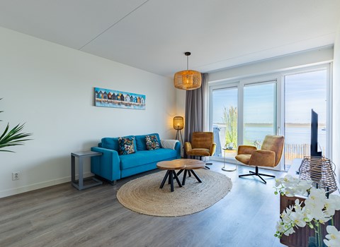 In the spacious accommodation there are also plenty of seating areas in both the sitting area, and at the kitchen table. The sitting area is a wonderful place to watch your favorite TV programs together. Whether you come in a warm summer or slightly cooler autumn. The Beachlodge DeLuxe with air conditioning and central heating is a wonderful place to stay in all weathers.