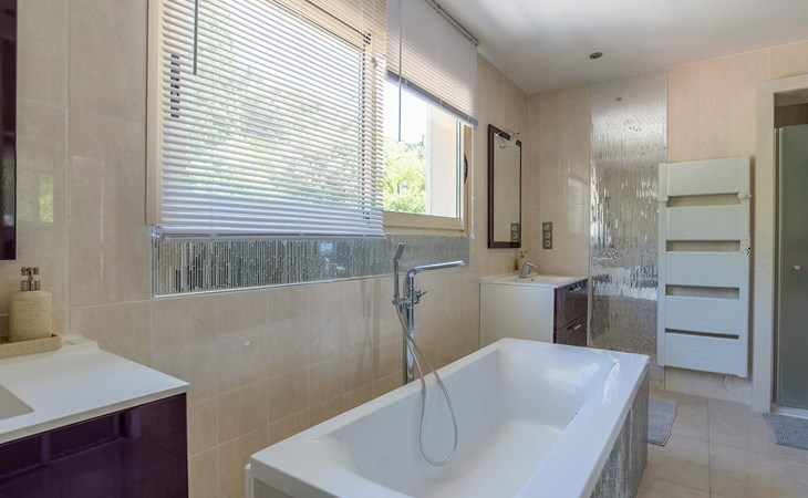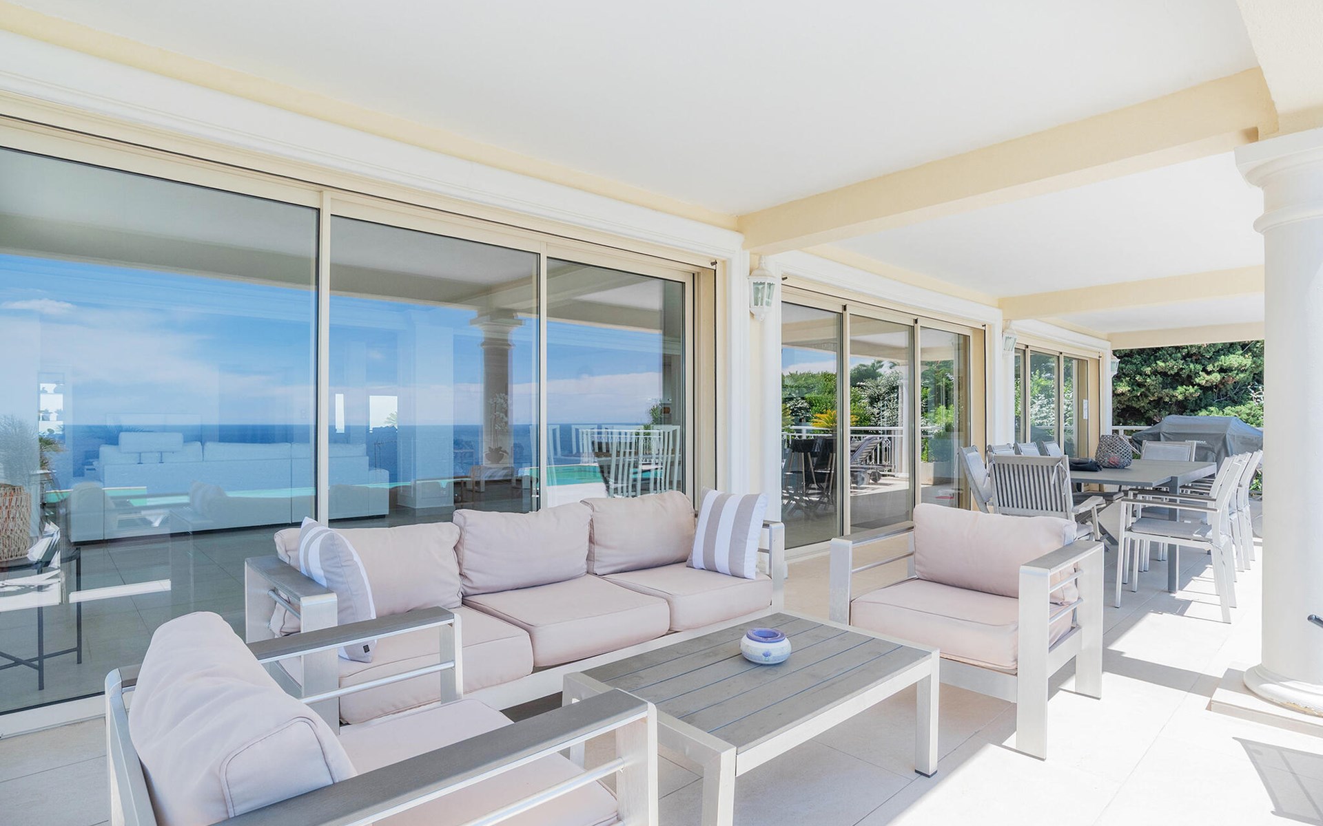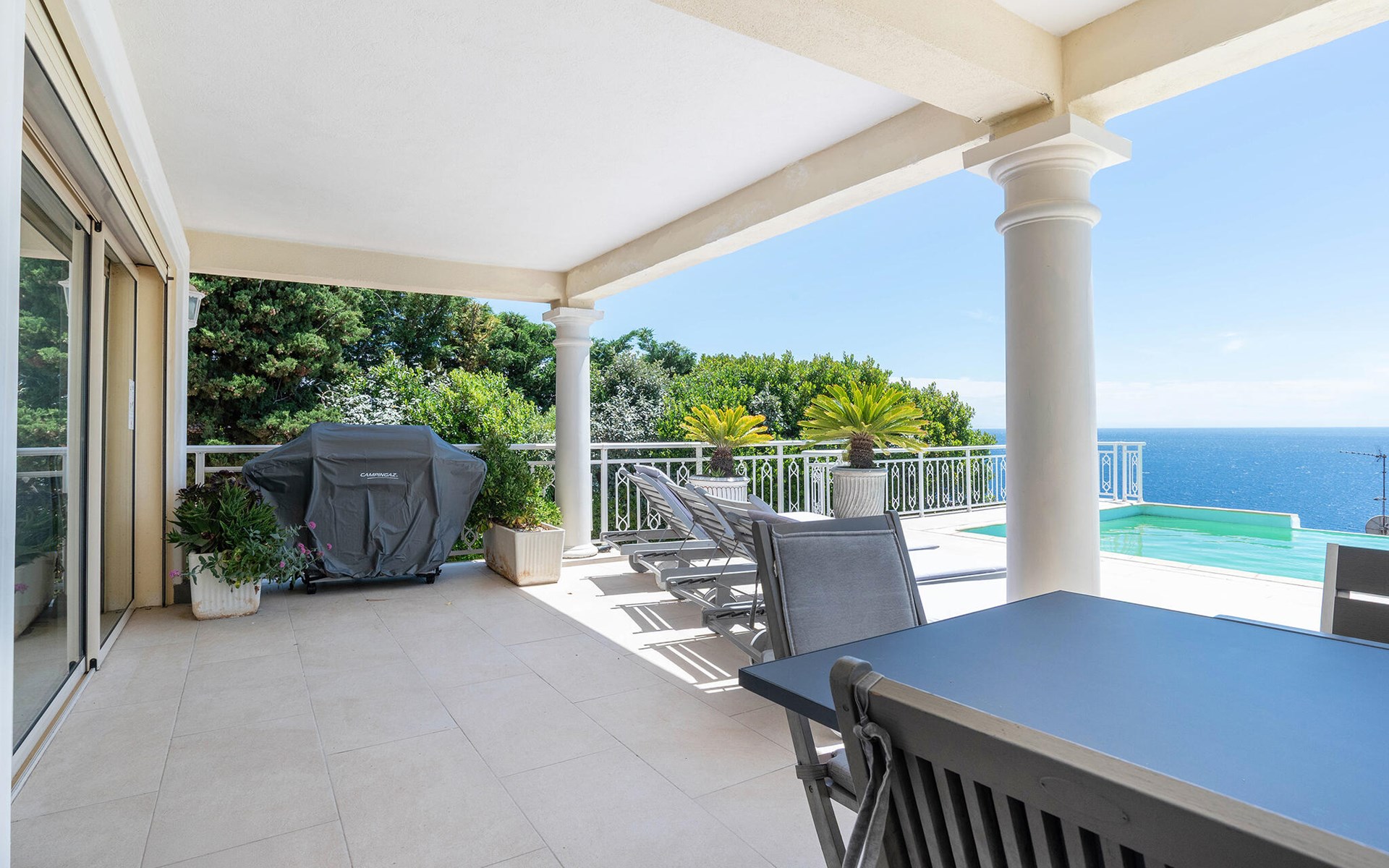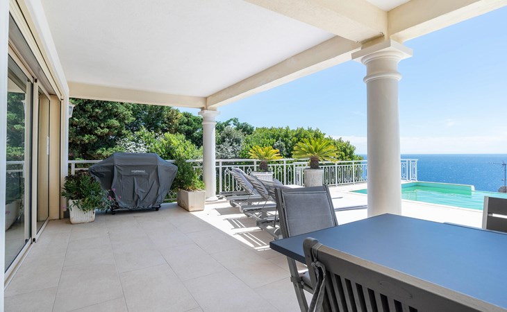 Step out onto the spacious terrace with covered lounge and dining area. Enjoy breakfast with a view of the sea or end the day on a sun lounger by the infinity pool. Use the barbecue for sociable evenings outdoors. The south-facing orientation of the property ensures many hours of sunshine and unrivalled views.