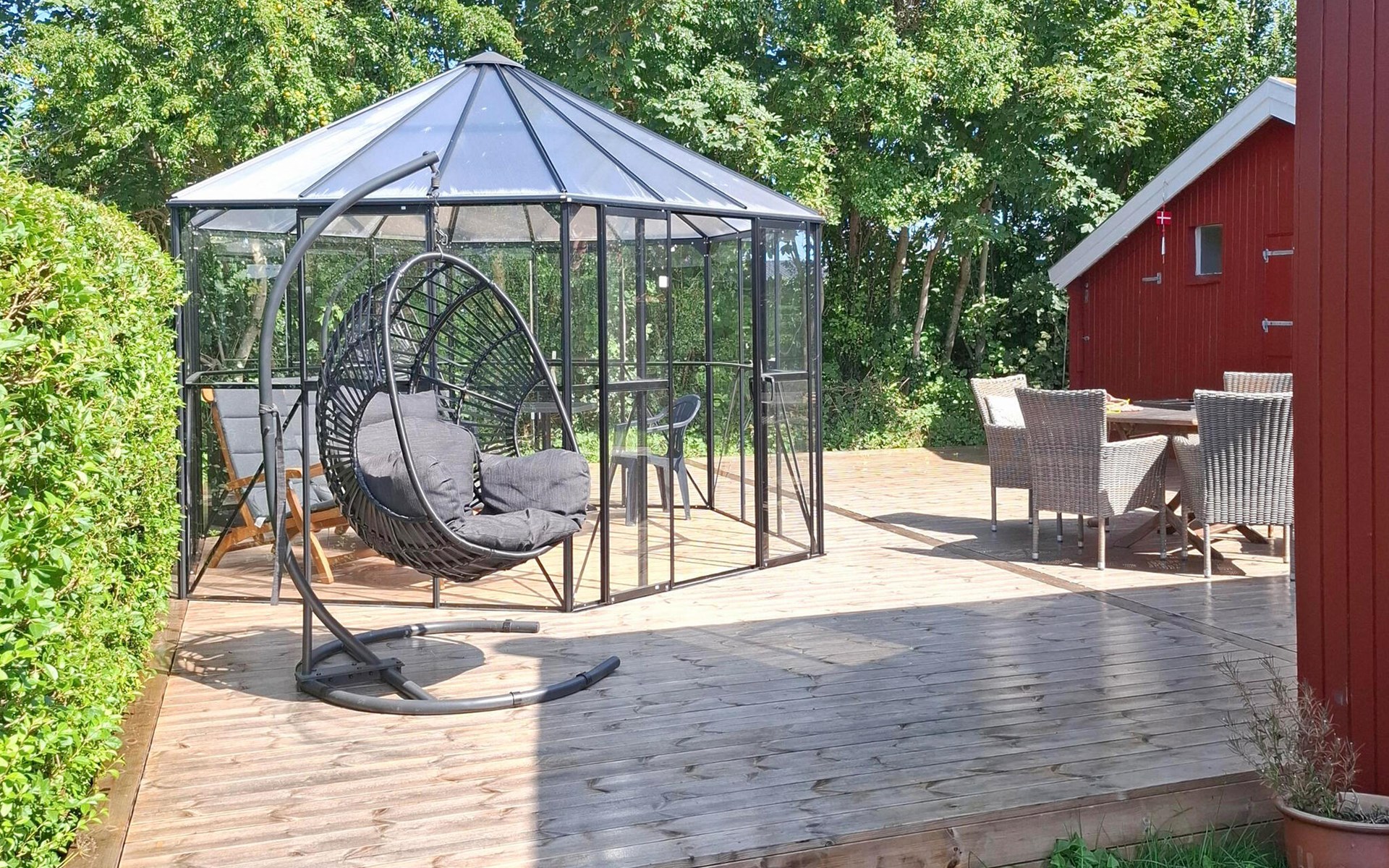 You can enjoy the fresh air and sunshine on the sun terrace. The terrace is perfect for cosy outdoor meals and relaxing hours in nature.