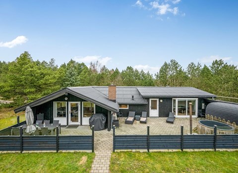 Welcome to this inviting cottage, which is wonderfully open, spacious and bright. In the tastefully decorated living room you will spend many pleasant hours. Here you make yourself comfortable and watch movies, play games, have a nice conversation and in winter enjoy the warmth and cozy atmosphere of the wood stove. Large windows provide plenty of light and views of the green surroundings. In the large, open and well-equipped kitchen of the house you can prepare healthy, delicious meals in no time. The house has a large bathroom with bathtub, washing machine, dryer and comfortable underfloor heating. There is another bathroom with underfloor heating. Spread throughout the house are the four bedrooms.