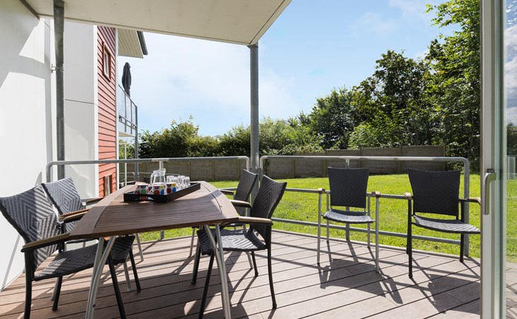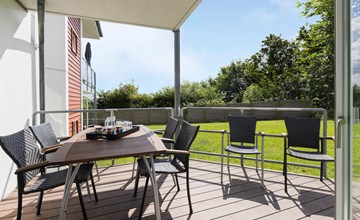 Welcome to this inviting holiday apartment, part of a residential complex that offers numerous apartments with the same layout. If you are travelling with family friends or a large family, you will find a wide range of accommodation to spend your holiday together. Step into this beautiful and light-flooded apartment and enjoy the bright ambience and cosiness created by the high quality furnishings. Go about your everyday holiday cooking, eating, playing and relaxing and enjoy the two terrace areas both in front of the entrance door and adjoining the living room. You can also catch a glimpse of the sea, which is not far away on foot.