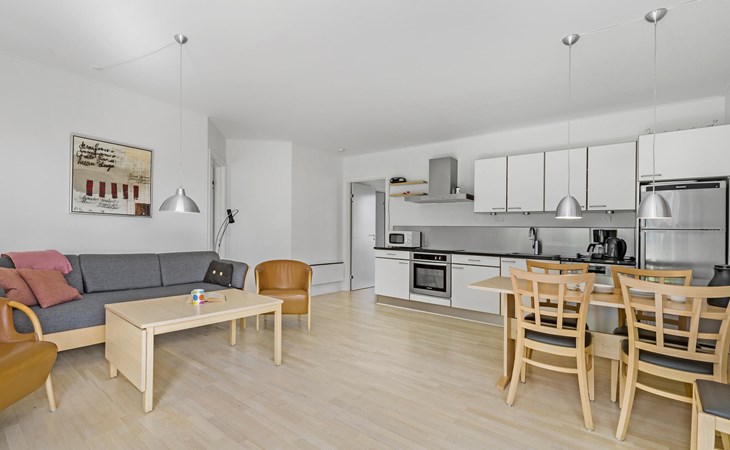 Enjoy your holiday in Gudhjem, a picturesque coastal town on the island of Bornholm, which will immediately enchant you with its charming harbour and colourful houses. Enjoy the relaxed atmosphere on a walk along the harbour promenade or linger in one of the cosy cafés with a view of the sea. The surrounding area offers numerous opportunities for active holidaymakers. Hike along the impressive cliff paths and discover the fascinating Helligdomsklipperne rock formation. Cycling is a particular pleasure on Bornholm, thanks to the well-developed cycle paths that lead through idyllic landscapes and along the coast. Those interested in culture should visit the nearby round church of Østerlars, one of the oldest and largest of its kind in Denmark. Another highlight is the Bornholm Art Museum, which houses an impressive collection of regional art. For a relaxing day by the sea, visit the sandy beaches of Balka and Dueodde, with their fine white sand and crystal-clear water.