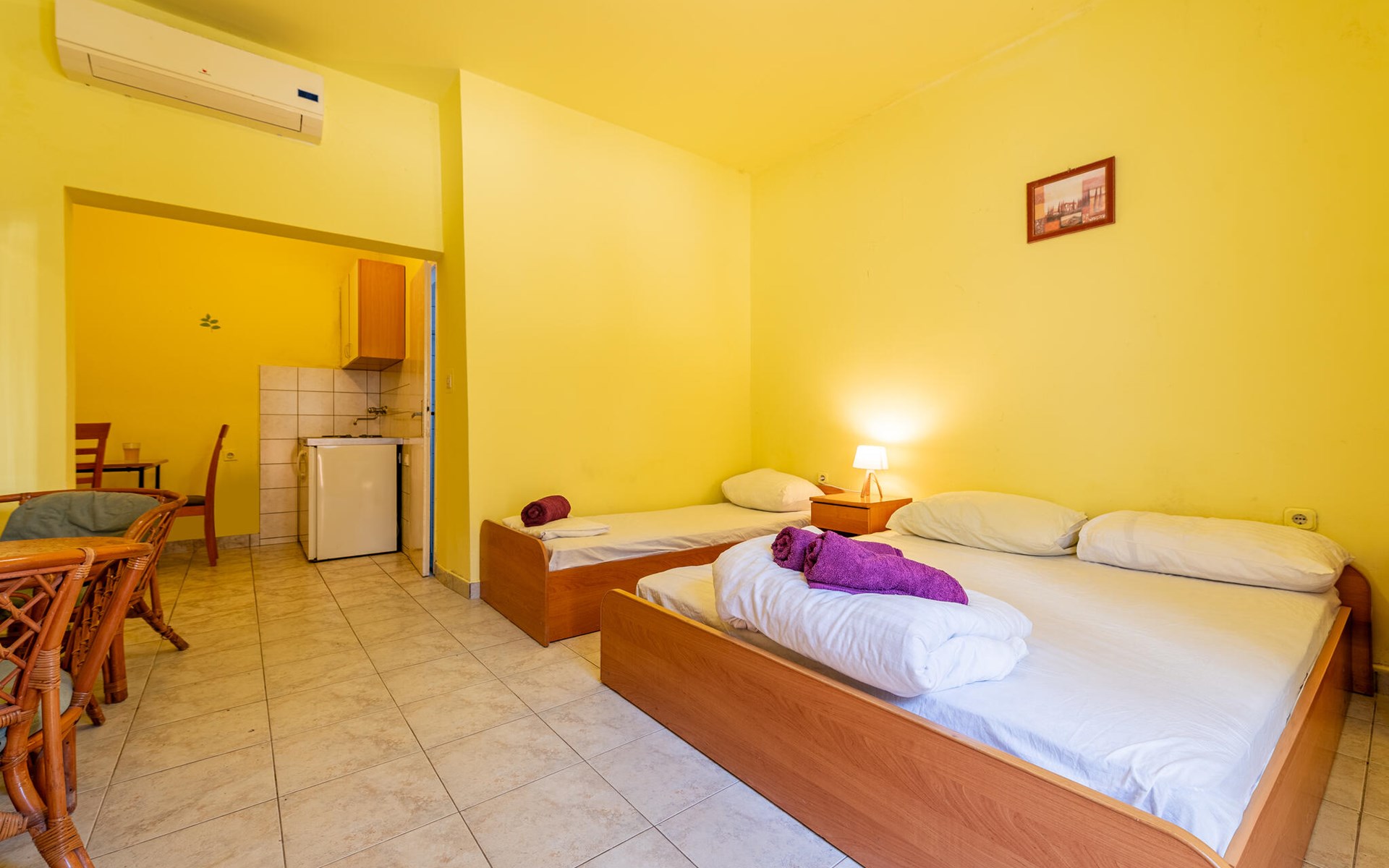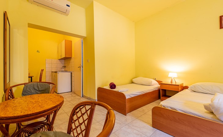 This well-kept holiday apartment invites you to enjoy a relaxing holiday on the beautiful island of Pag. Use the open-plan kitchen to prepare your favourite meals and take a seat at the inviting dining table. Plan your next activities here or round off the day with a board game.