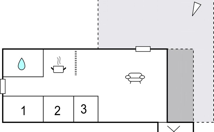 The interiors are bright and comfortably furnished. Kitchen and dining room are in open connection with each other and the living room has comfortable furniture, heat pump and wood stove. There is free internet and from the living room you have direct access to a large paved terrace with garden furniture and barbecue. Children can play ball and romp around on the grounds.