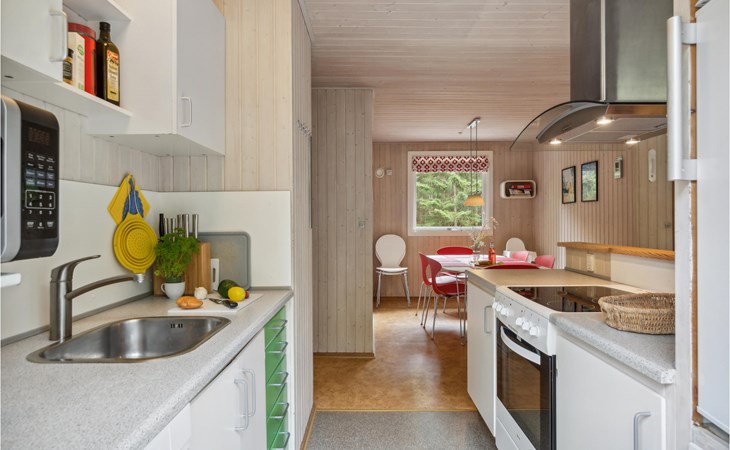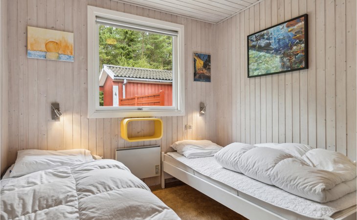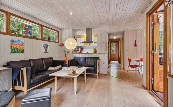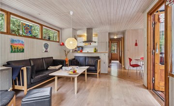 In the attractive Dueodde area, close to the sandy beach, this cozy vacation home welcomes you. The bright and comfortably furnished interior makes a nice, well-kept impression and offers everything you need for a relaxing family vacation. Spend sociable hours playing games or make yourself comfortable on the sofa with your favorite book. On cool evenings you can warm yourself in front of the fireplace with a tea