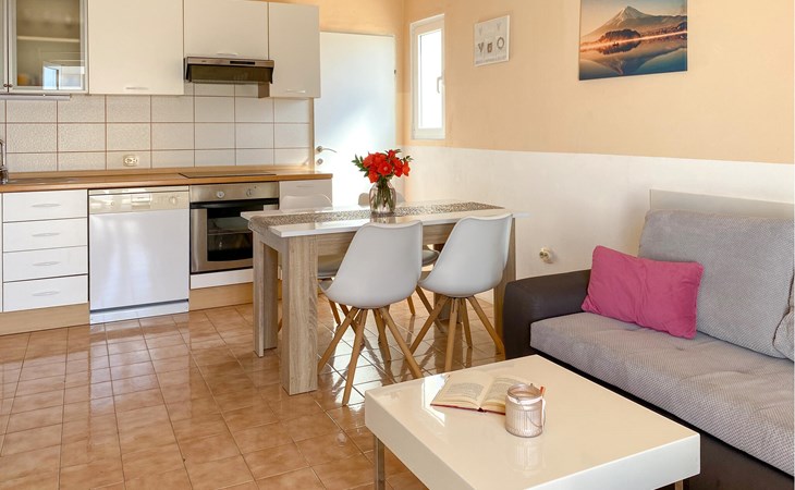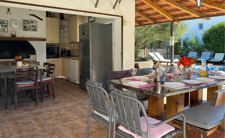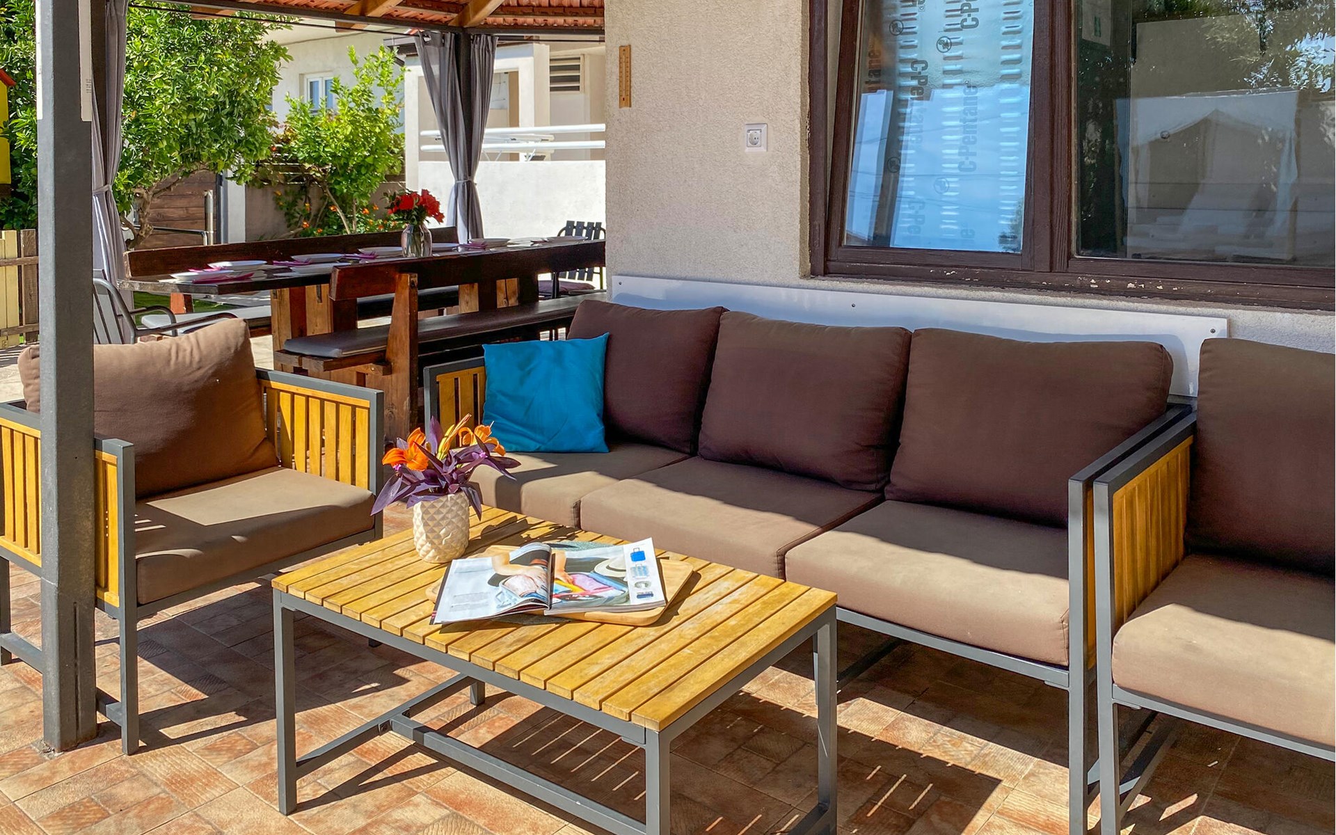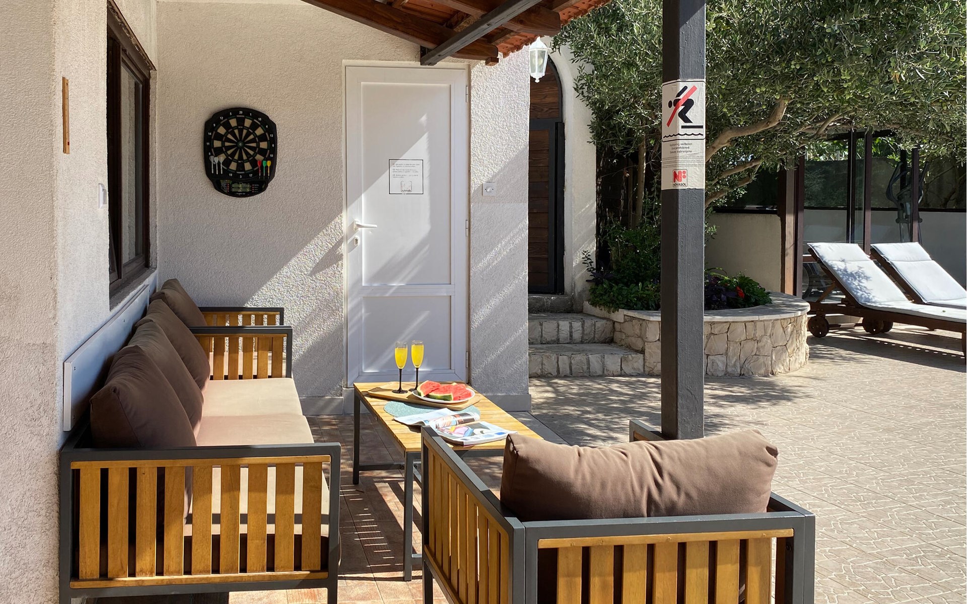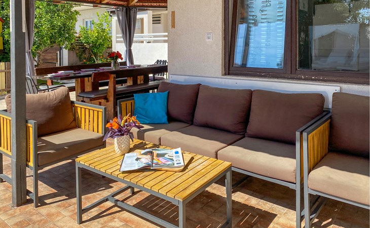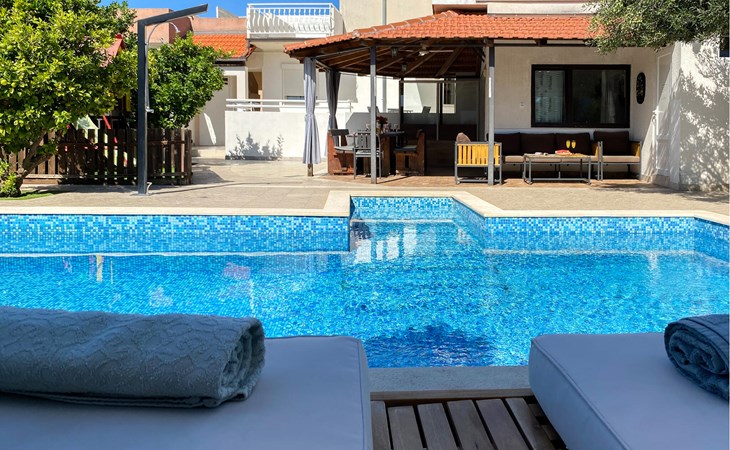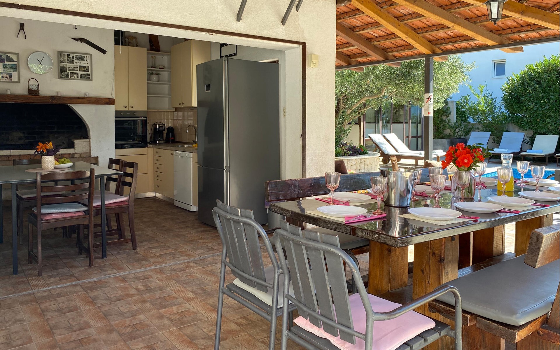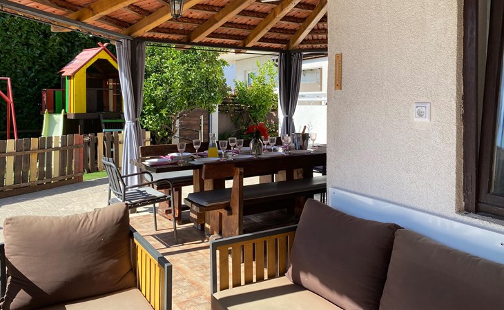 This beautiful semi-detached house is ideal for families who want to spend their vacations together. The vacation property consists of two residential units that are connected by an external staircase and therefore offers privacy to each party if needed. Relax on the terrace while the children play in the fenced area with playhouse and swing or refresh themselves in the pool. On the fully fenced property is also a summer kitchen with large table for 12 people, which invites to socialize. The small resort is known for its beautiful pebble beach, which offers many recreational activities. You should also visit the cultural city of Trogir. In Trogir the complete old town center and in Split the Diocletian's Palace are under the protection of UNESCO. Nowhere in the world are there such cultural treasures within a radius of only 30 km. It is possible to make excursions from Trogir to the neighboring islands. Ciovo is an island connected to Trogir by a bridge. From there you can also get to the center of Split by boat (from the place Slatina). The landlord lives nearby and is at your disposal if you need anything. Be sure to visit the cities of Trogir and Split, which offer many opportunities in the summer and offer various events and activities that will complement your vacation, as well as excellent gastronomic offer, which includes traditional Dalmatian dishes and other delicacies.