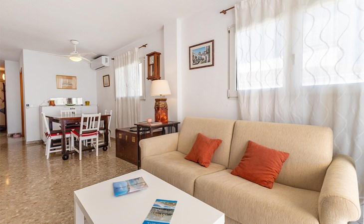 It has 2 bedrooms, 2 bathrooms, a kitchen, a spacious living room with sea views and a wonderful terrace with barbecue and 2 sun loungers and a large table. Perfect to enjoy pleasant evenings with family or friends with a beautiful view.