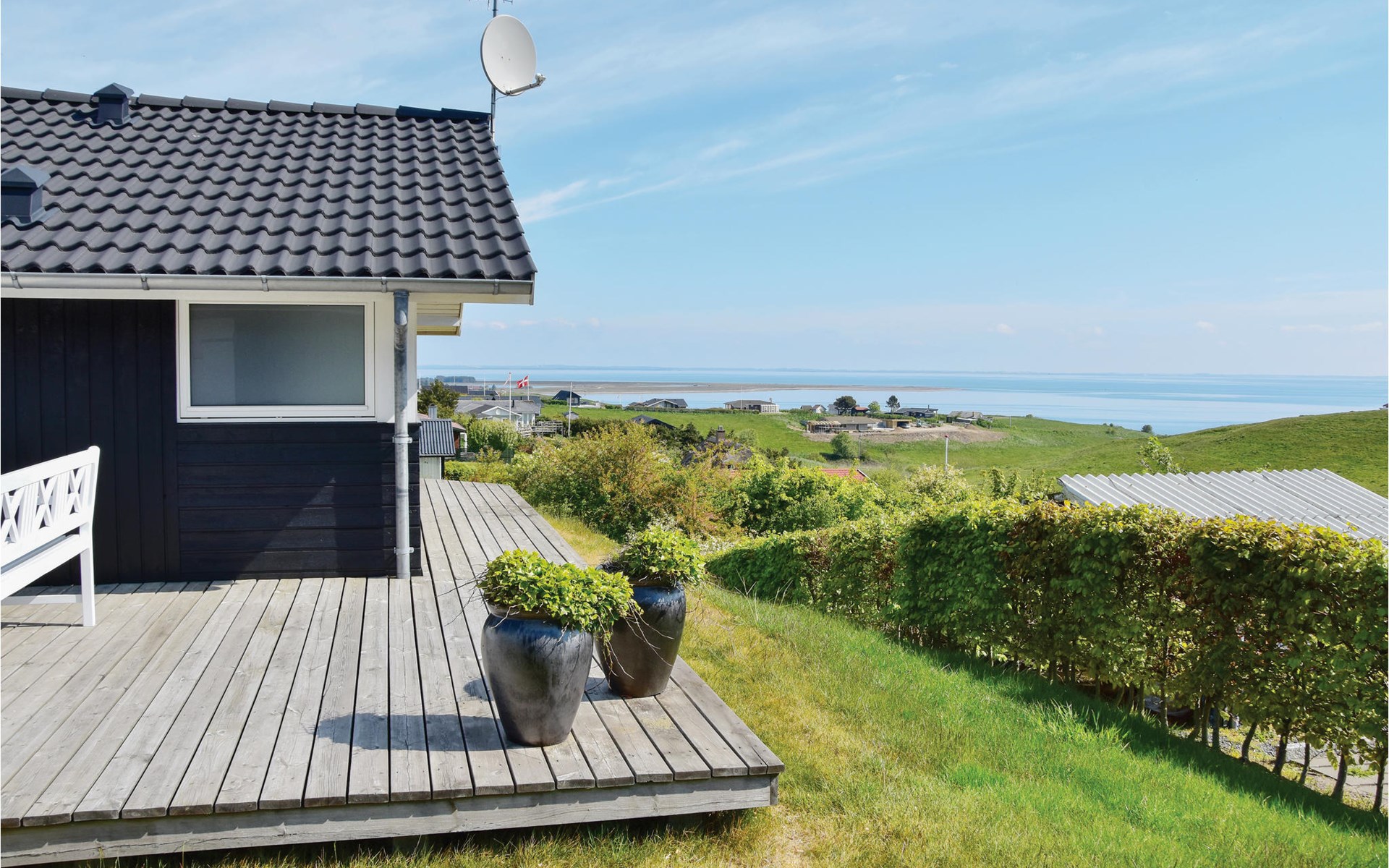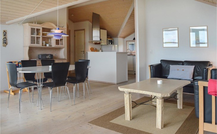 This friendly property is located very close to the child-friendly beach and offers a beautiful panoramic view of the Nissum Bredning from the house and garden. The magnificent and diverse nature around Gjeller Odde can be easily explored on many marked hiking trails. Amateur anglers will find optimal fishing grounds along the coast. Just 2 km away is Lemvig Golf Club, an 18-hole course on a hill with a nature reserve as its immediate neighbor. Only 5 km away is charming Lemvig, home to nice stores, good eateries and a bustling fishing port. Culture is also not neglected here, there are many sights and interesting museums. The North Sea is only 15 minutes away by car.
