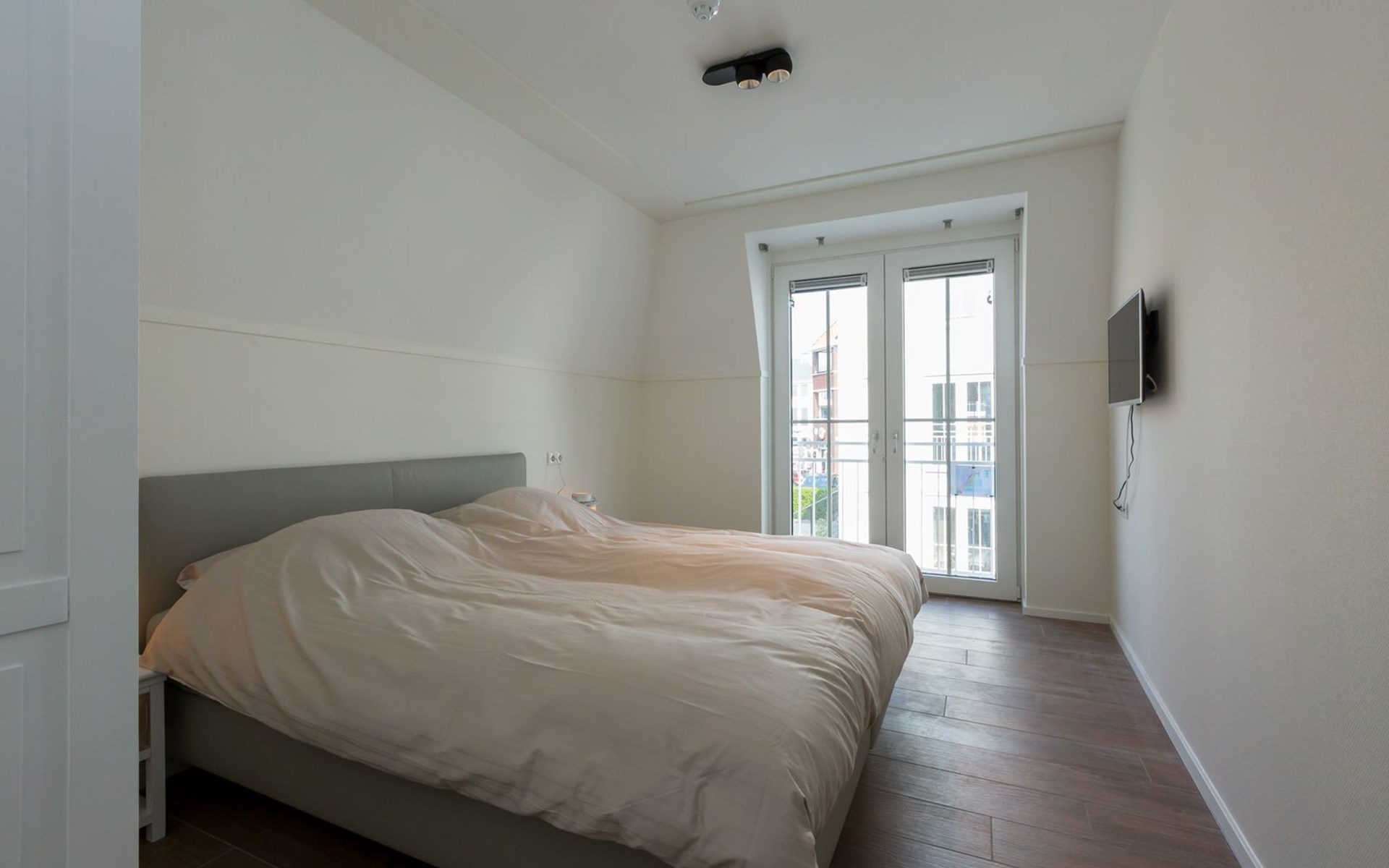 The luxurious bathroom features a bathtub, walk-in shower, double sink, and a sunshower. There is also a separate laundry room with a washing machine and dryer. The spacious 42 m² rooftop terrace offers a delightful place to relax, soak up the sun, and enjoy the sunset. The apartment includes a private outdoor storage room and a parking space with a charging station for electric cars (NewMotion).