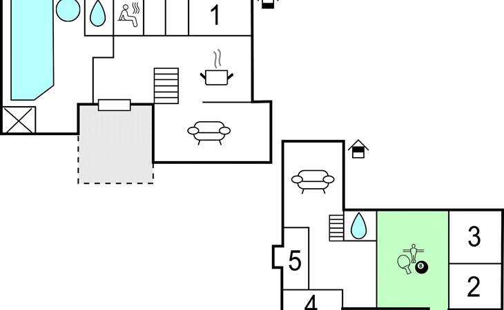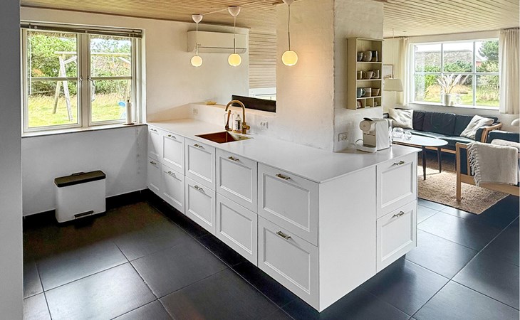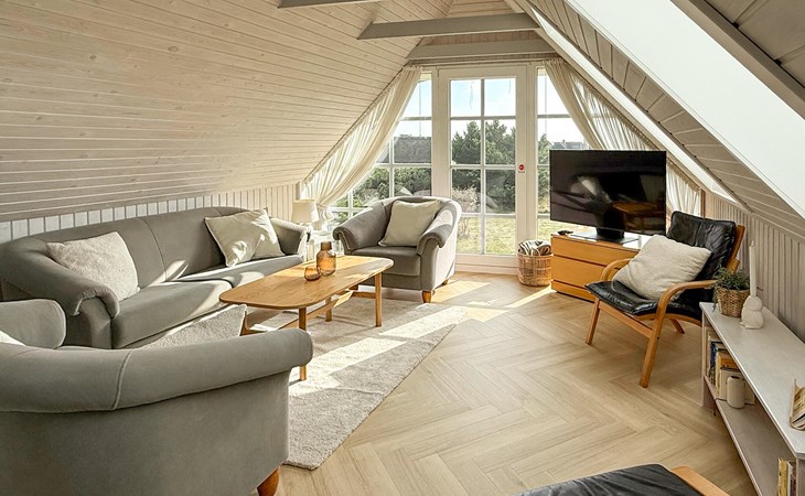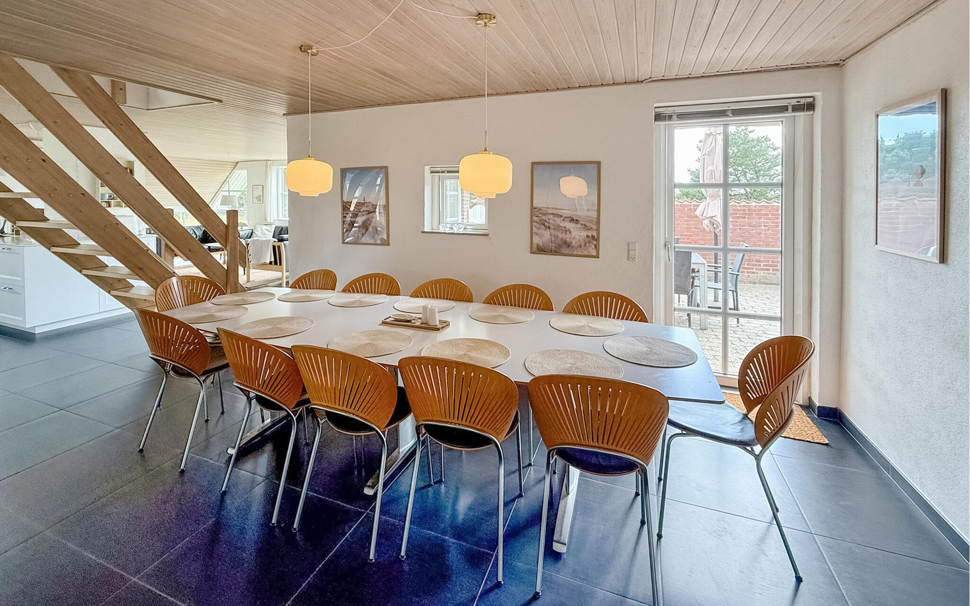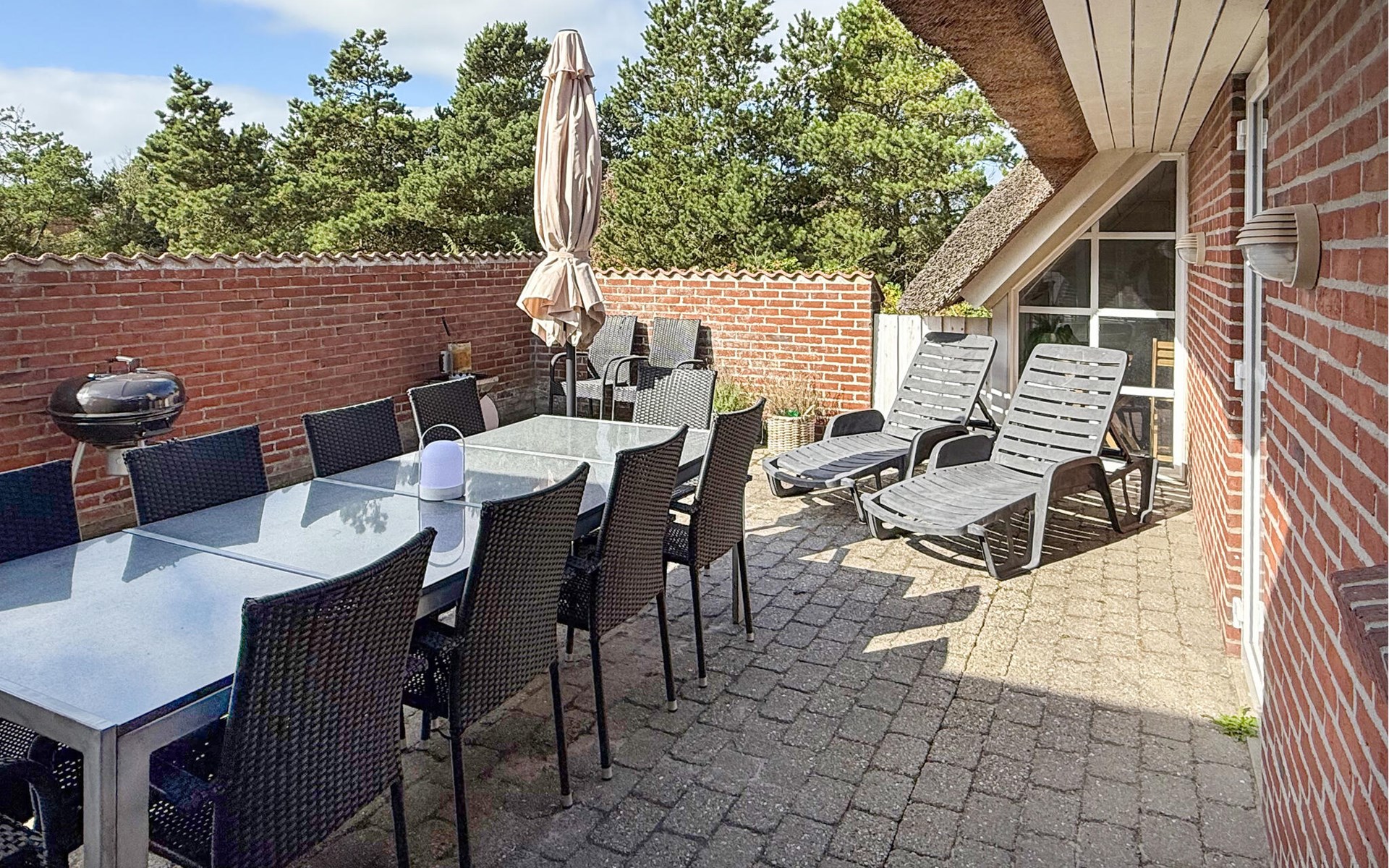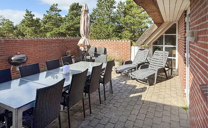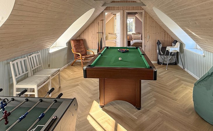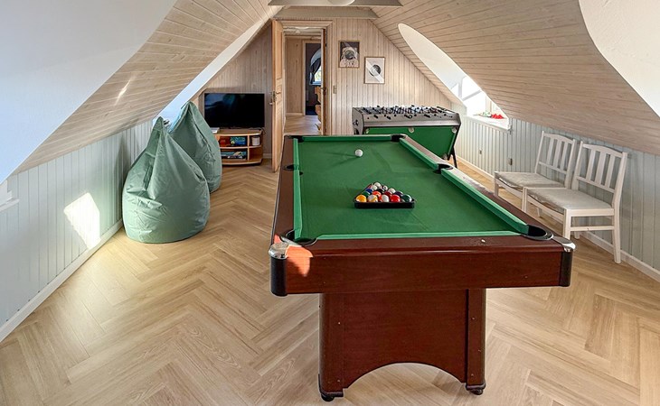 Here you can expect a beautiful vacation home with thatched roof in a wonderful location. Namely, you can see the North Sea from here, especially from the 1st floor you have a beautiful view. The house contains everything that contributes to a relaxing stay: swimming pool, 6 person whirlpool, an infrared sauna and an activity room on the 1st floor, which invites you to friendly competitions. Would you like to explore the surroundings? Why not visit the lighthouse and enjoy the view all the way out to the windmill park. A walk in the town of Blåvand is an interesting experience. Here you will find numerous specialty stores, restaurants, supermarkets and cafes, and last but not least, plenty of entertainment during the summer months.