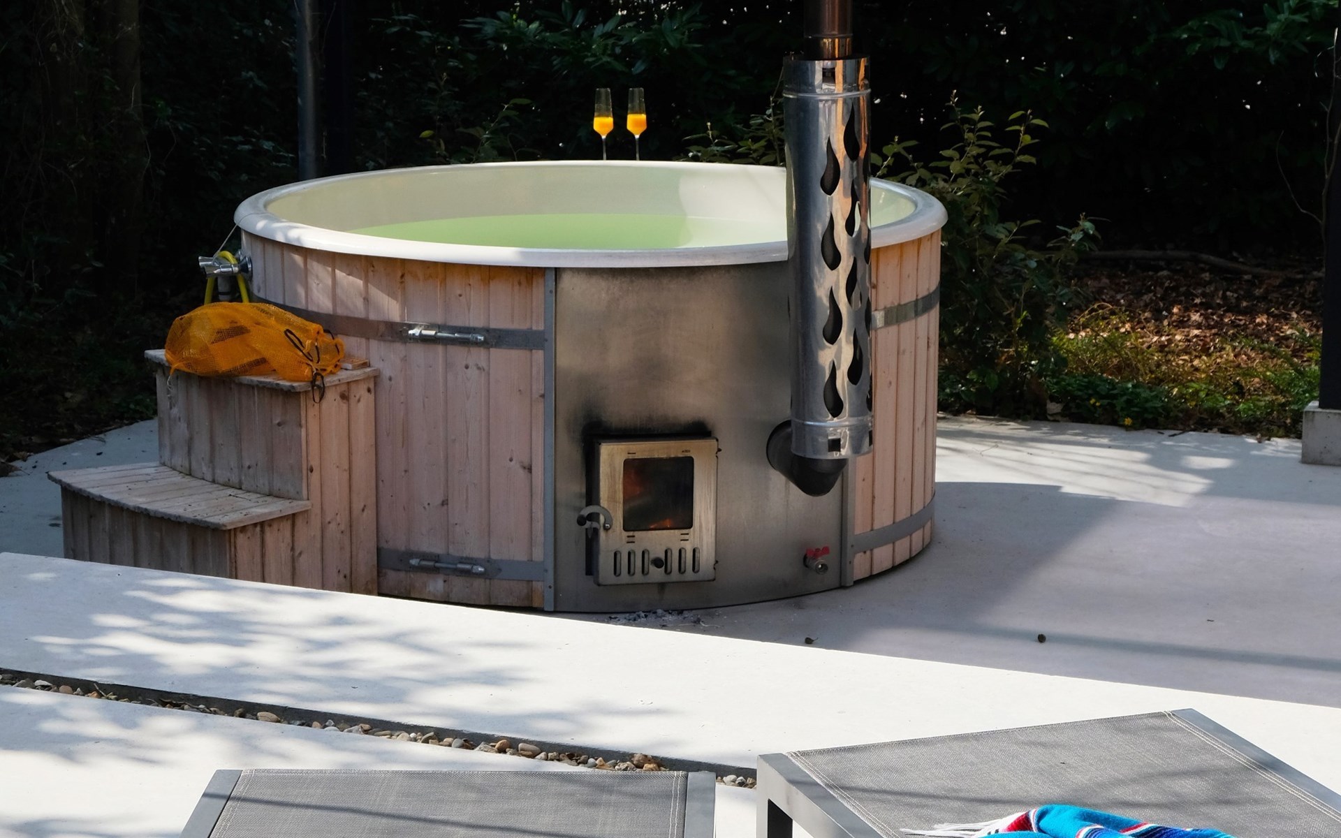 There is also a storage room with a washing machine and dryer, iron and ironing board available. The hot tub is located on a covered terrace (you need to fill it yourself upon arrival). There is wood available (for a fee) to heat the hot tub. The hot tub cannot be used in frost.