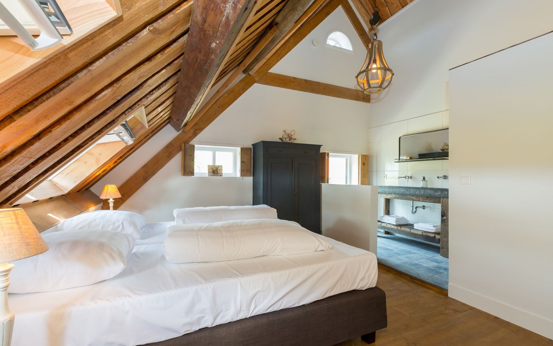 Luxury and comfort with an eye for details! A perfect picture to spend your vacation. This holiday home has been newly realized in a former barn in Zeeland. The house has its own special character. Old roof trusses, robust wooden staircases and wall doors that adorn the entrance and ensure an industrial and stylish style. The luxury open kitchen lacks nothing. Oven, dishwasher, microwave are of course present. The living room offers plenty of space and gives access to the terrace through the French doors. There is a fully equipped bathroom with sun shower and bath on the ground floor. On the first floor are 2x 2-person bedrooms. There is a separate toilet. Via a split level you can reach the 2nd floor where the master bedroom is (open bedroom), with a bathroom en-suite with shower and sink, and a double room with single beds. The garden is spacious and nicely separated with a large private terrace. There is ample parking, behind the afforestation. For €10 per night you can additionally use the electric charging station. Wifi is available free of charge joy and there is chromecast available so you can watch your own netflix, youtube etc. A Green Egg BBQ is available free of charge (including coal, on request upon arrival).