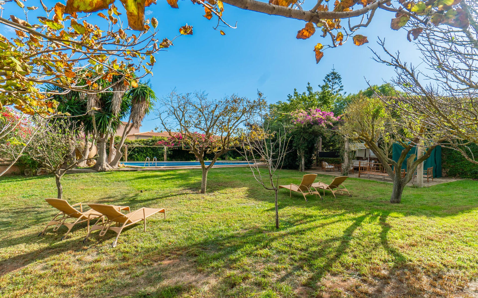 The property on which the apartment Sa Posada d'Aumallia 34 is located is surrounded by a unique tranquillity. Lawns, small paths and many Mediterranean plants, including centuries-old trees, characterise the area and always provide airy, natural shade.