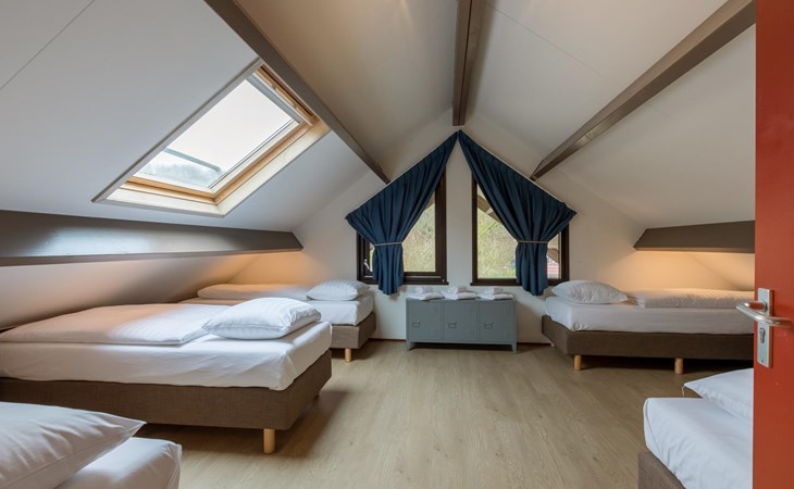This holiday home invites you to spend your holidays in peace, but close to the center of Zoutelande. The house is shielded from the main road. The living room with open kitchen and dining area offers space for the entire group. The kitchen has a dishwasher, filter coffeemachine, oven and microwave. The atmospheric fireplace invites you to enjoy after a strenuous day. Through the patio doors you walk into the large screened garden. Here you can enjoy playing with various playground equipment. One bathroom has two showers and two sinks. There is also an enclosed toilet. The second bathroom is suitable for disabled people, in it there is a shower, sink and toilet. There is also a double bedroom. On the 1st floor there are 2 bedroom with 5 single beds each. A second bedroom with 2 singlebeds. Groups are not allowed, only families.