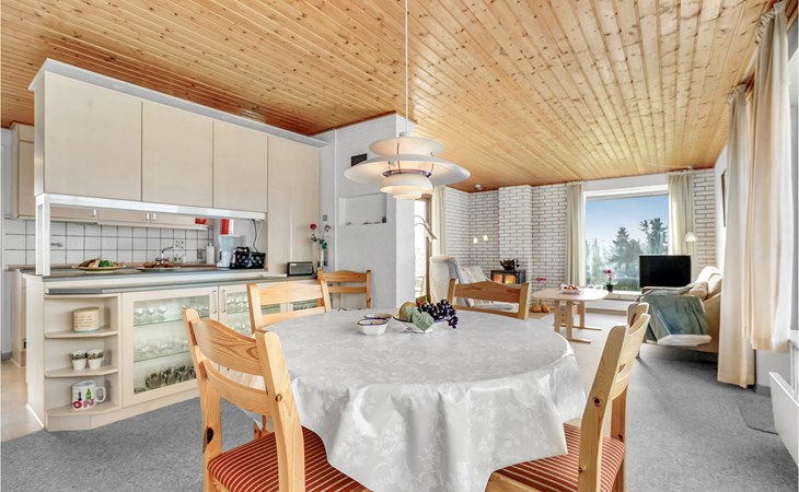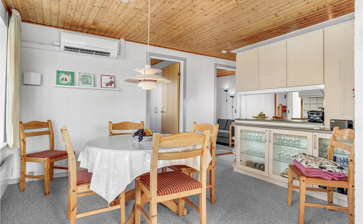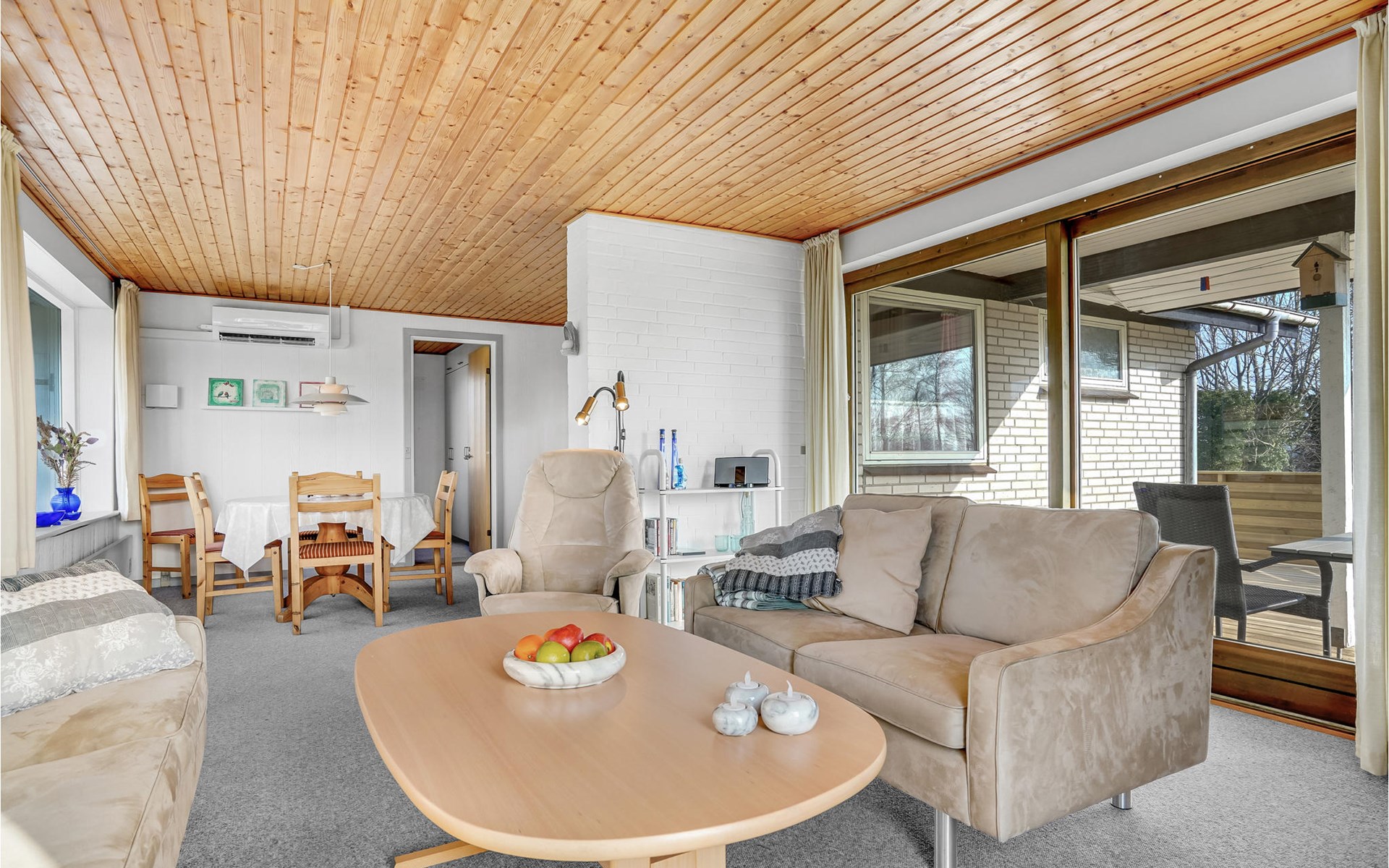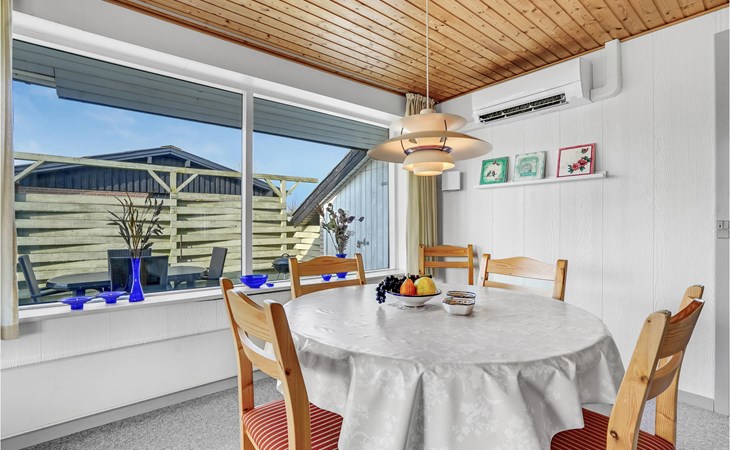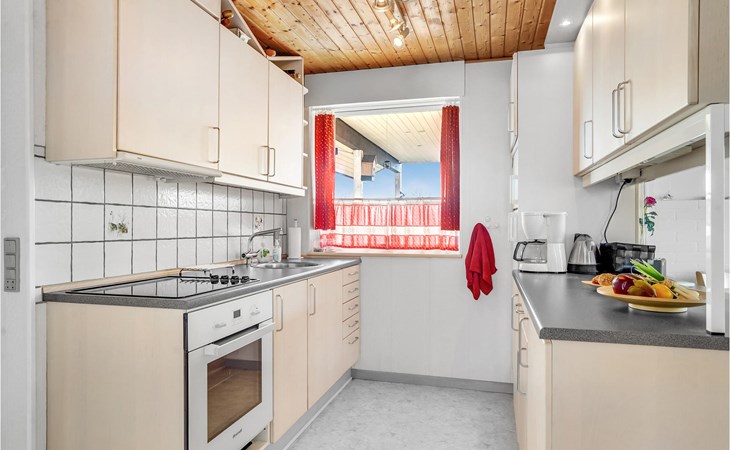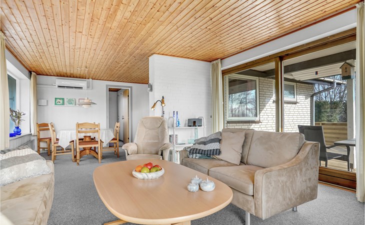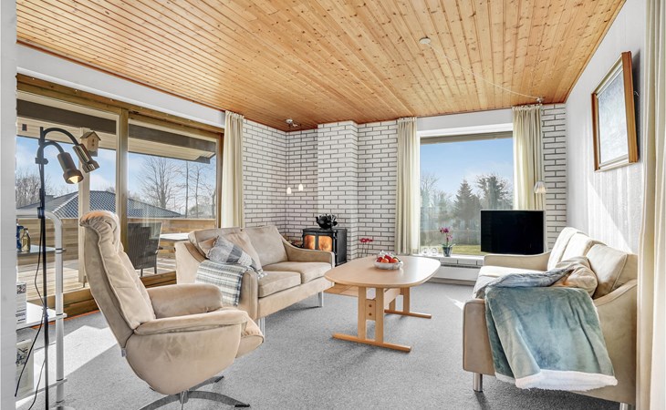 This vacation home invites you to a relaxing and pleasant vacation close to the Danish Baltic Sea beaches. Open the door in sunny weather, step out onto the large and partially covered terrace and enjoy the beautiful view of the countryside. The small table offers an ideal place for your morning coffee.