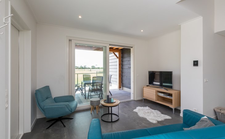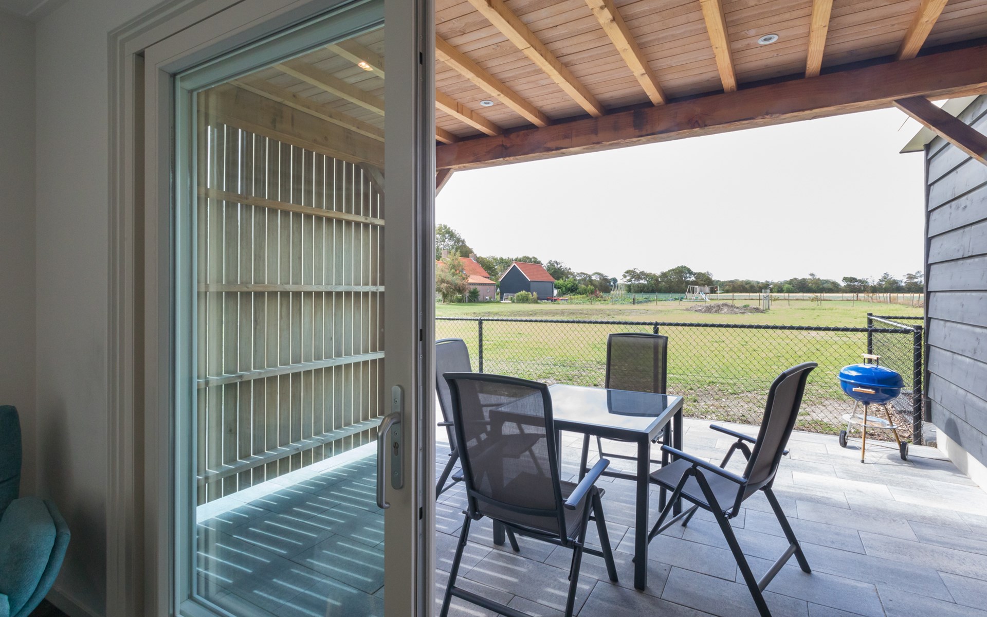 This new holiday home in the polder near Koudekerke is a true juwel! The large living room overlooks the landscape, and what a view you can enjoy! From the living room you step onto the covered porch where you can relax, watch the sunset or enjoy a sultry summer evening. All comfort is present in the open kitchen with combi-microwave, dishwasher, Senseo and fiktercoffemachine and Litte Freezer. The bathroom has a sink and walk-in shower. There is a separate toilet. The open staircase leads to the upper floor. Here are two bedrooms with single beds that guarantee a great night's sleep. How nice is it to wake up and start the day on the terrace with a freshly made breakfast?