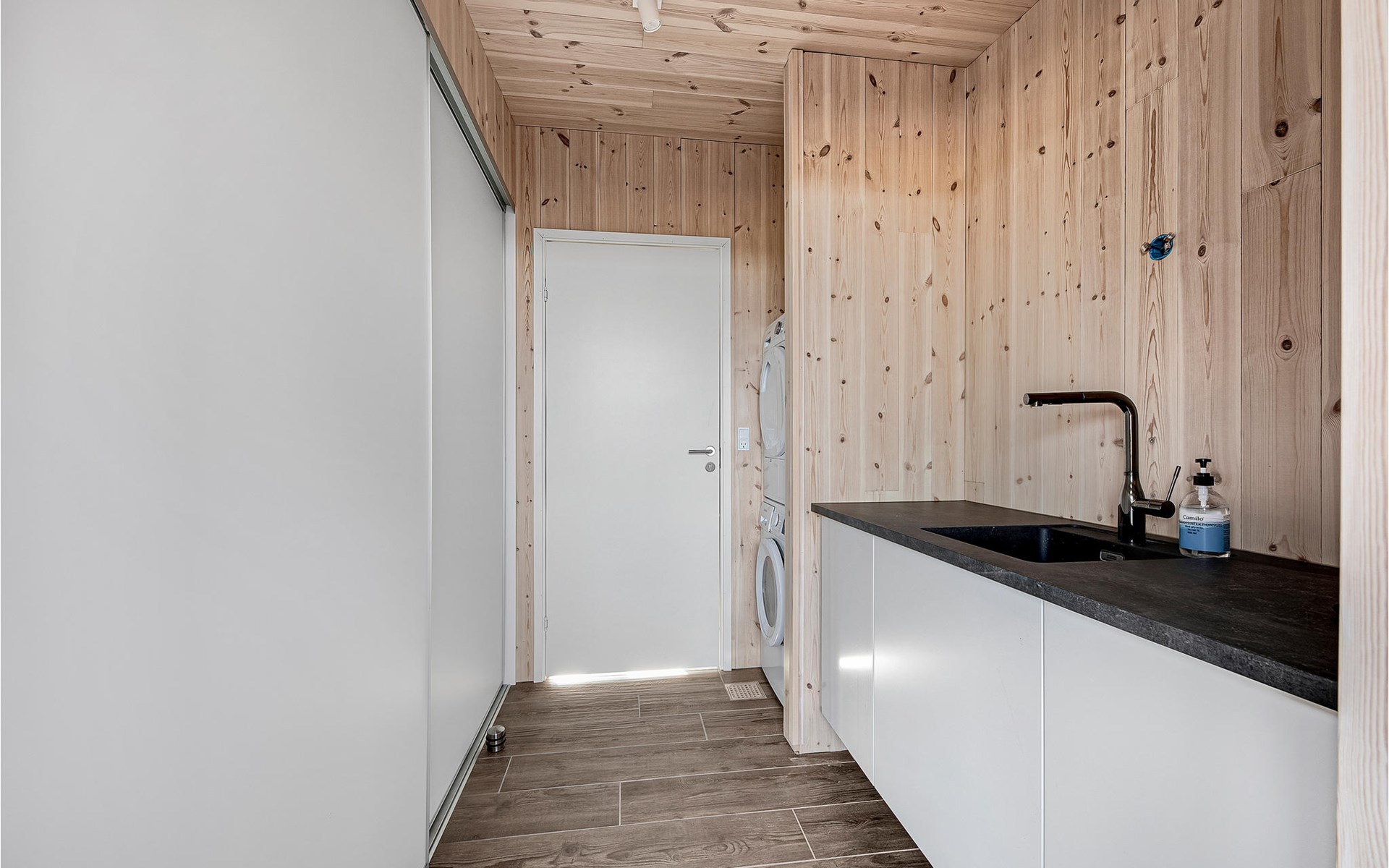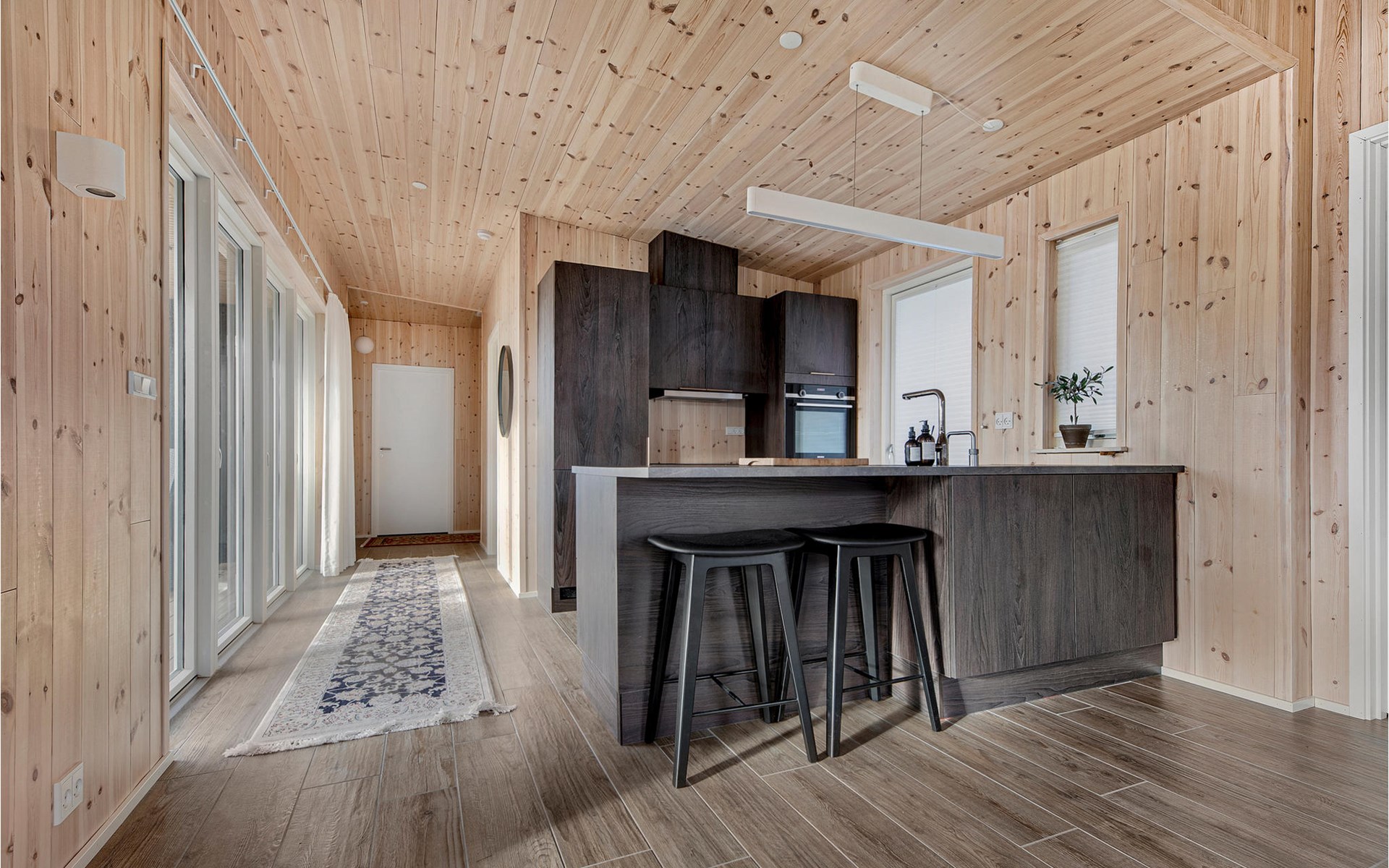 Modern and large wooden house in a beautiful green location, not far from the sea.