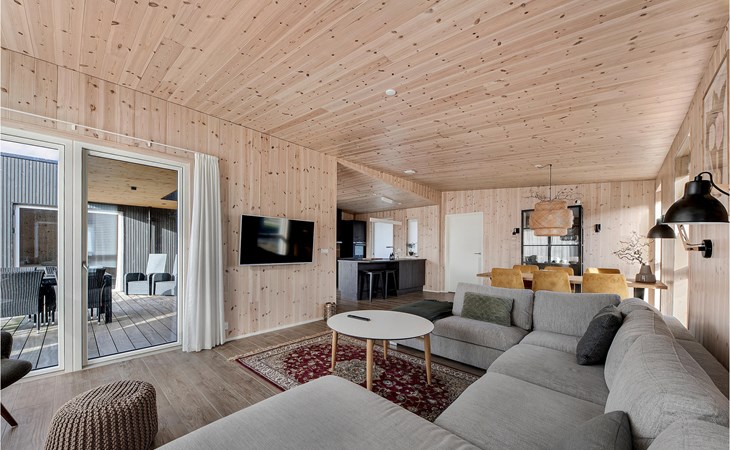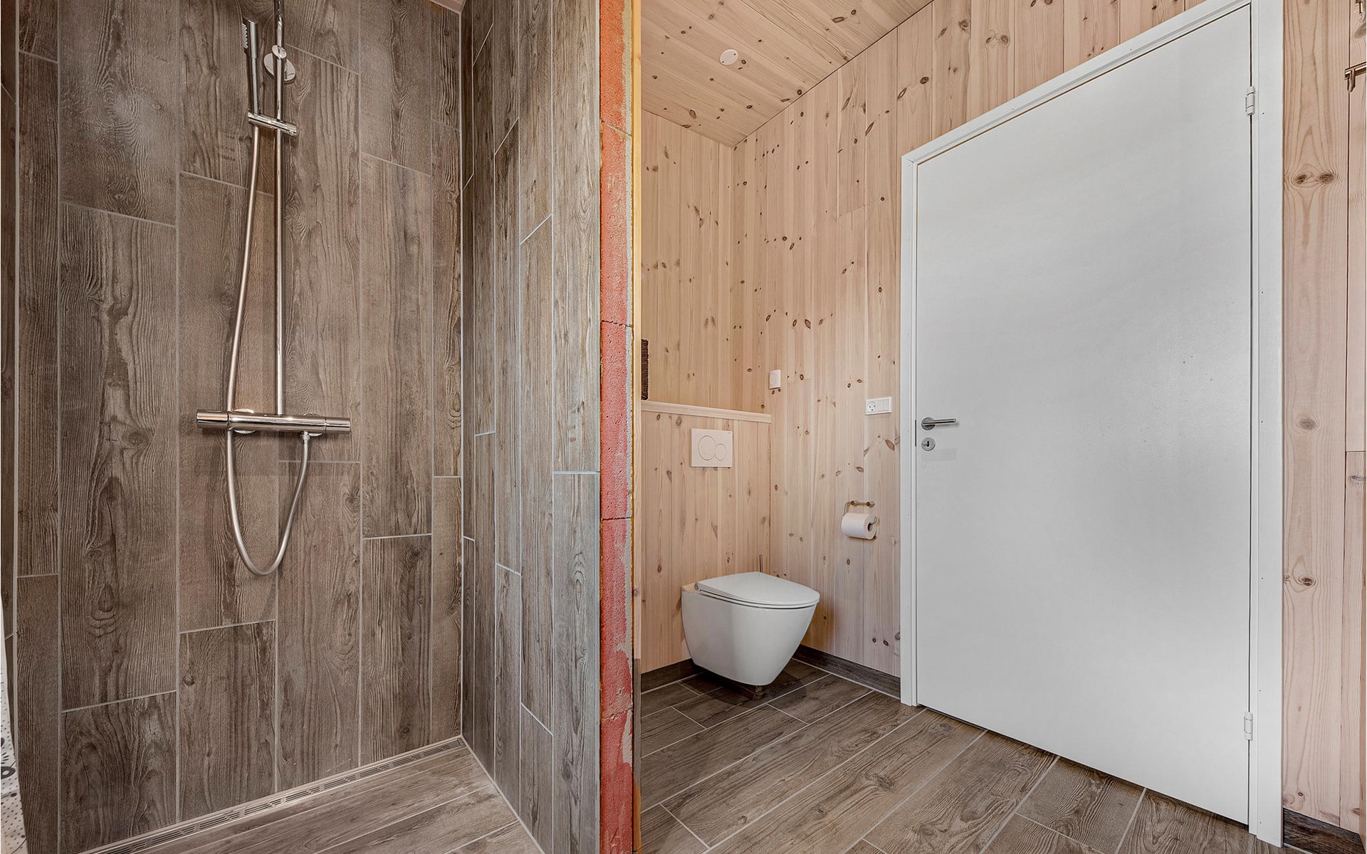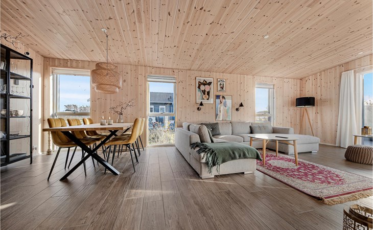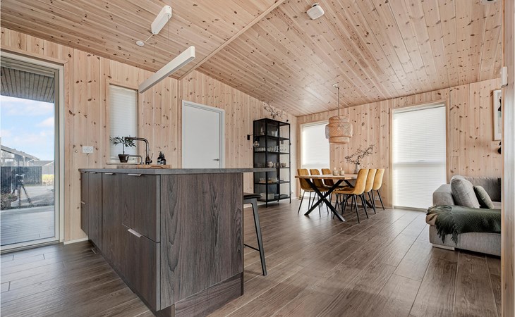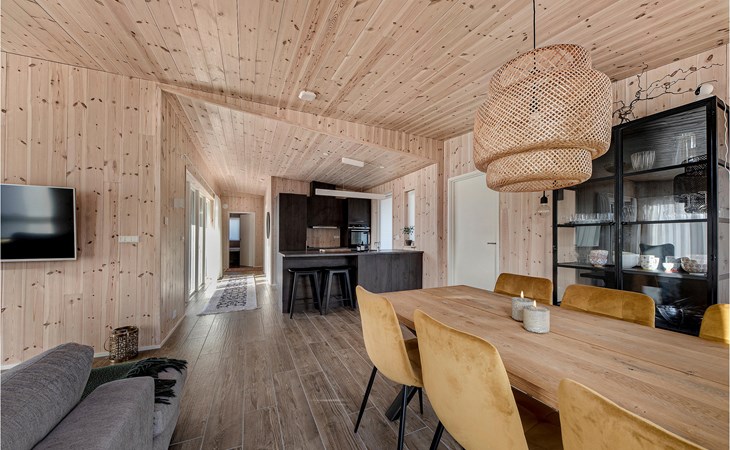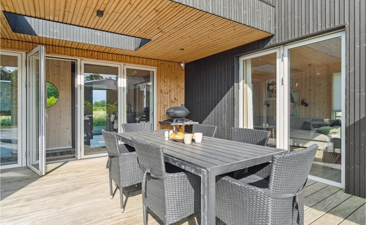 Spend a comfortable vacation with your family in this beautiful vacation home, which creates a warm and cozy atmosphere thanks to its wooden cladding. Enjoy your time in the bright living room, which will become your natural family meeting place. Here you can relax together on the sofa, watch your favorite movie, cook together or play board games. In warm temperatures you can use the large sun terrace and lounge on the high-quality garden furniture, watch the horses grazing in the neighboring paddock or prepare a delicious BBQ and enjoy it together in the open air.