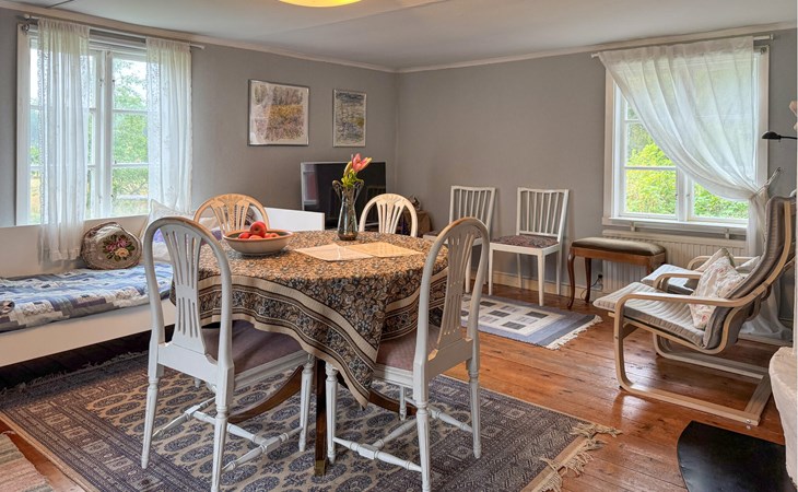 The holiday home is surrounded by forests in the Småland highlands and if you come at the right time, you will find blueberries, lingonberries and mushrooms. You can paddle or row on the Härån river, which flows alongside the village, and discover several small lakes. A rowing boat and a kayak are available. If you fancy a day out, visit the High Chaparall amusement park in Hillerstorp or the exhibitions at Vandalorum in Värnamo.
