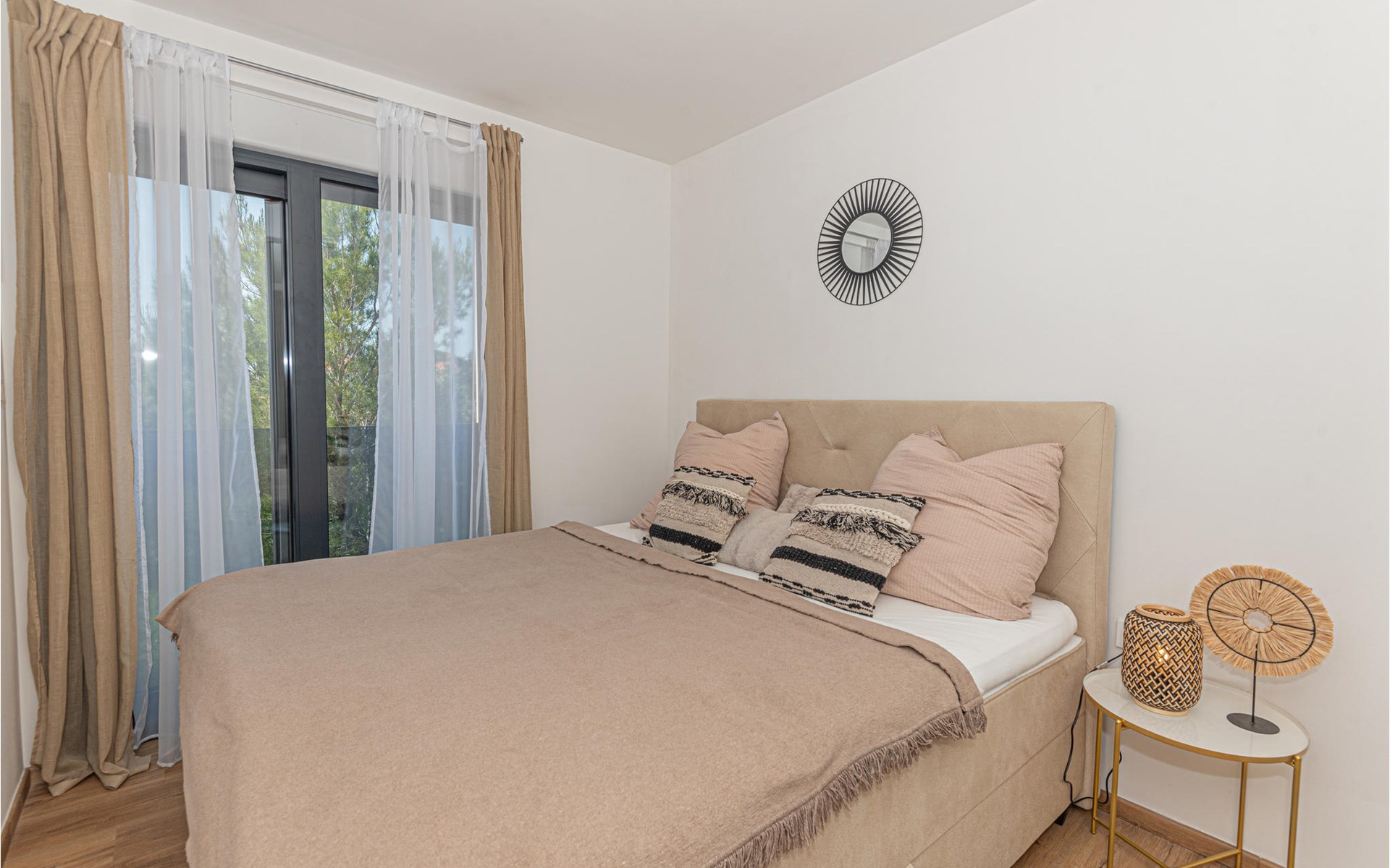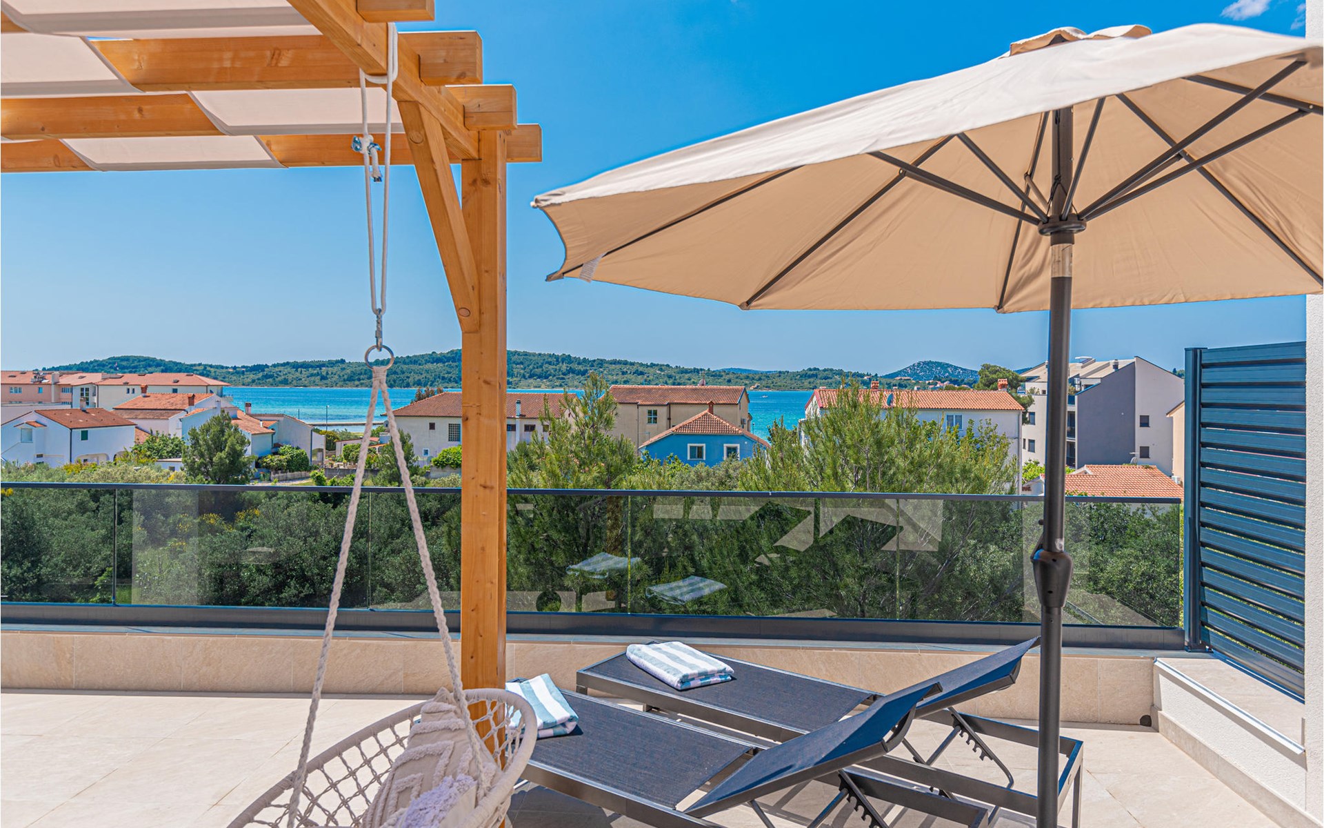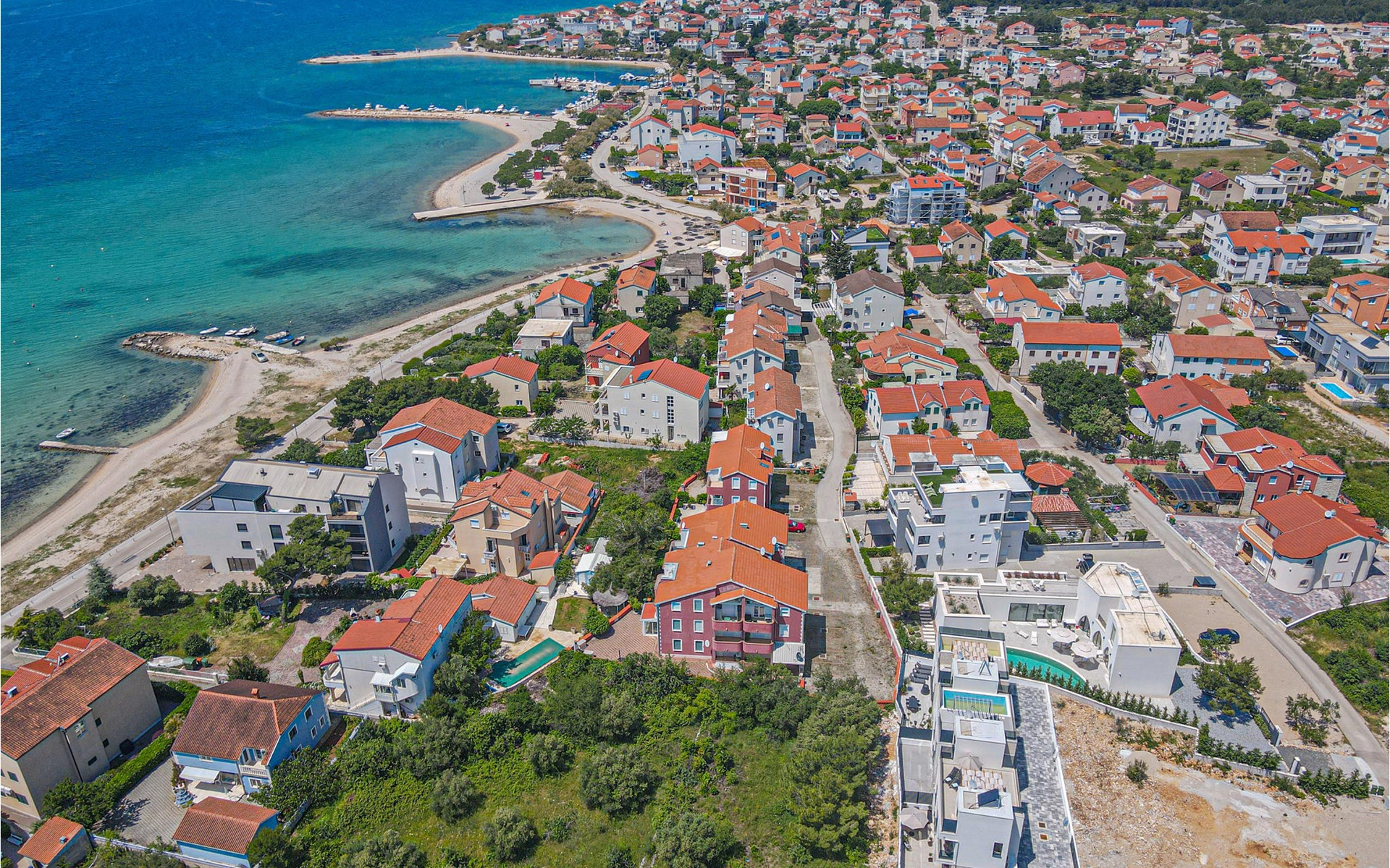 The sandy beach is just a few steps away from this house. Visit the Krka National Park with its seven waterfalls and the island of Visovac and the town of ibenik with its numerous historic fortresses.