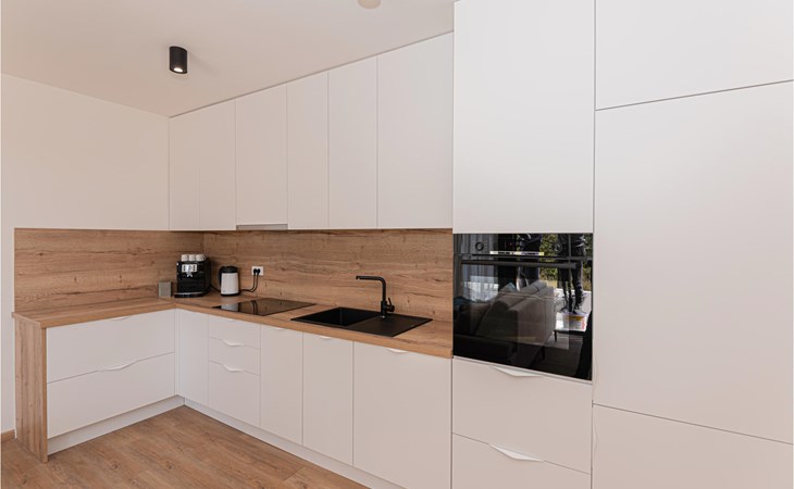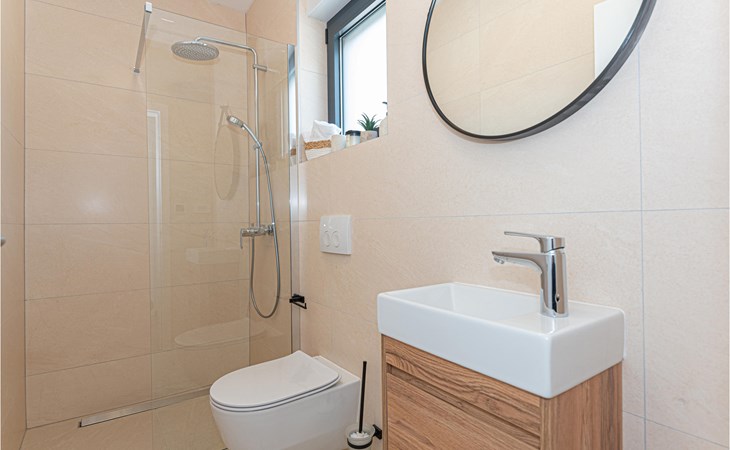 You can spend a wonderful time with your loved ones in this spacious and bright holiday home. The comfortable and modern furnishings and subtle colours make the house a place where you can really relax on holiday. There is plenty of space in the living area to spend time together, whether cooking in the open kitchen or watching a film on the spacious sofa, and you can also enjoy a beautiful view of the sea.