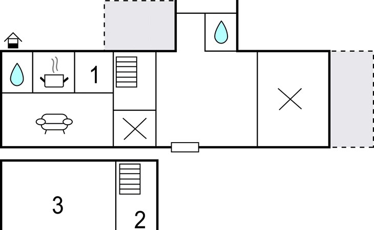 The 1st floor is heated by electric heating, while the living room has a heat pump to heat the entire first floor. The garden room is unheated and there is access to the terrace as well as the fenced garden. In the house there is Boxer TV with German channel (ZDF).