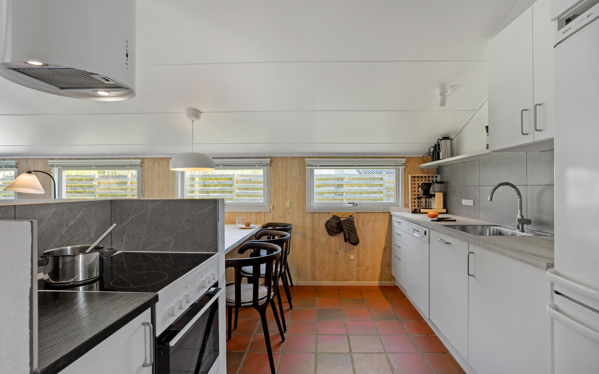 Your holiday home is bright and tastefully furnished, with a lovely open-plan living area, a well-equipped kitchen, a dining area, a cosy living room with a wood-burning stove and a bathroom with a sauna. From the living room you have access to a large, open terrace where you can spend many relaxing hours in a cosy atmosphere. The children have plenty of space to play on the lawn. The holiday home boasts an attractive location close to a wonderful beach, a mini golf course and a cosy little marina.