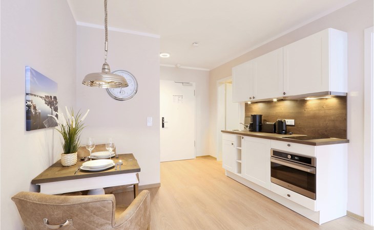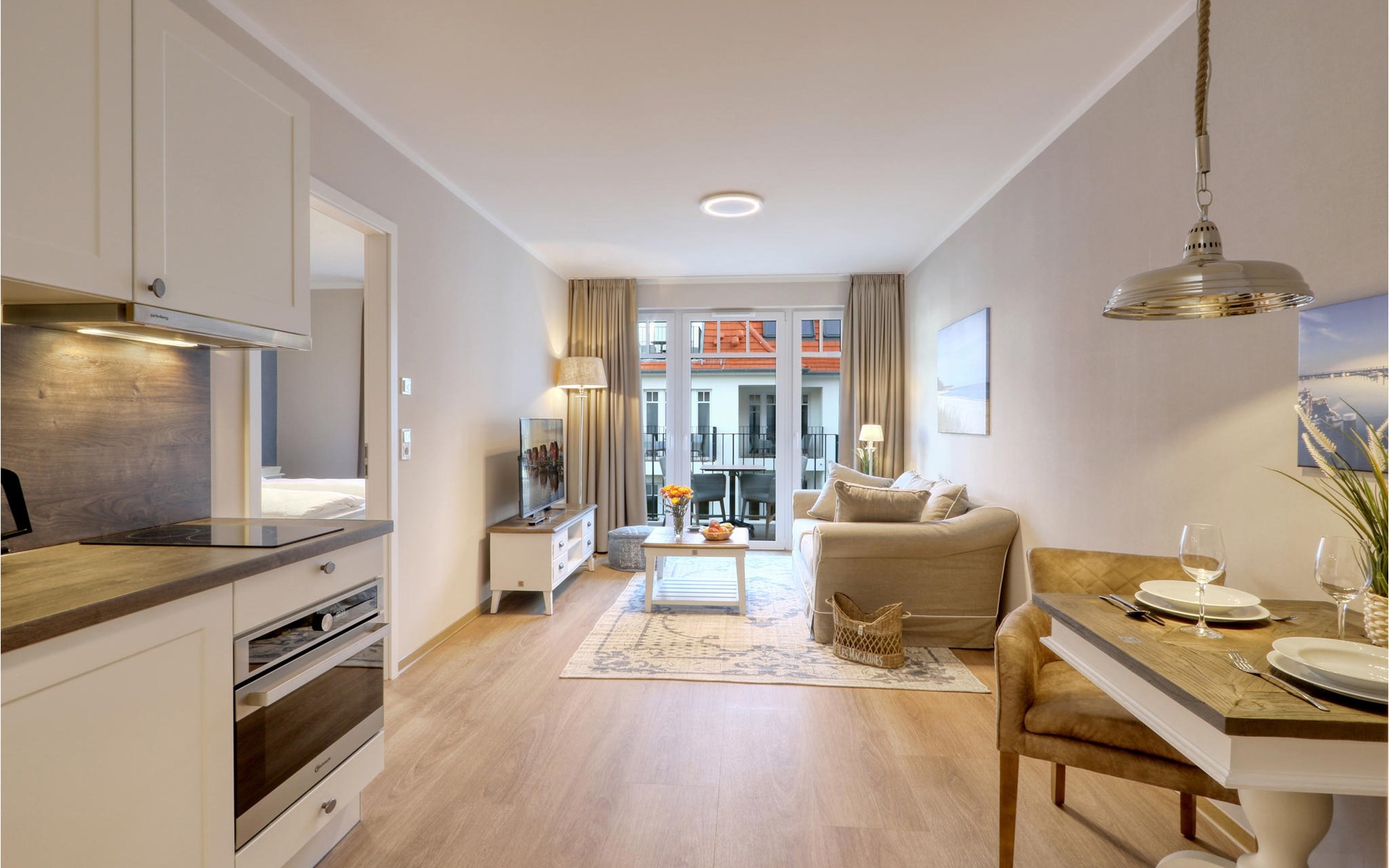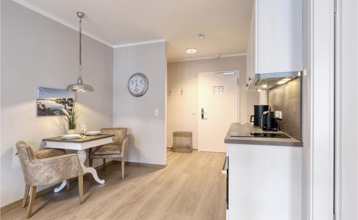 Let yourself be enchanted by the kilometre-long sandy beach, crystal-clear water and unspoilt nature. Start the day on your own terrace/balcony with fresh bread rolls from the bakery next door. A kitchenette for preparing small meals is available in the flat. A cosy evening in the flat is just as tempting as a delicious evening meal with a cold beer in the restaurant. So that you don't have to worry about anything during your relaxing holiday, reception will be happy to help you with any questions, requests and insider tips in and around Boltenhagen.