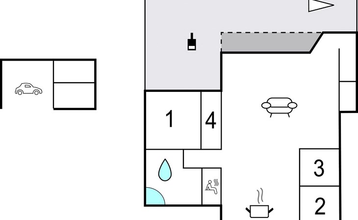After an active day you can very well switch off here. In the alcove in the living and dining room are two of the ten sleeping places. The cottage is located near a good and family-friendly beach and in addition to very good fishing in the area, you will find at the house, among other things, a covered Ausnehmmeplatz.