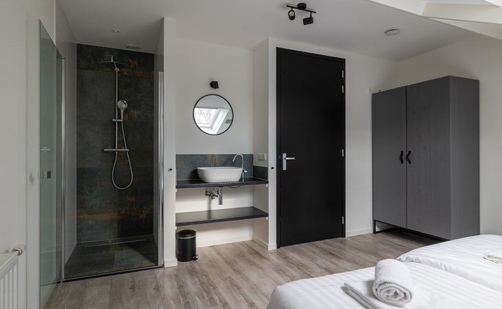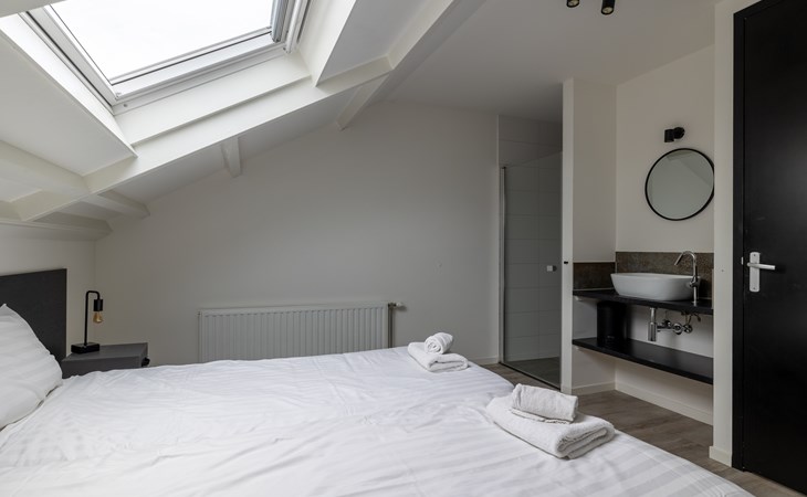The prime location Uitspanning Oranjezon requires almost no explanation. This location is located on the cycling routes and at the bottom of the Oranjezon dune and nature reserve. The whole has a special character. This house is built in a monumental barn and is tastefully decorated. Nothing is missing in the luxurious open kitchen. Fridge with freezer, dishwasher, combi-microwave, toaster and L'Or cup coffee machine are of course available. The living room offers plenty of space and gives access to the terrace. Here you can enjoy the sun. On the ground floor there is a bedroom with 2x singlebeds and on the 1st floor there are two bedrooms with a 2 x single beds. Each bedroom has a bathroom. EThis is luxuriously equipped with a shower and washbasin. There is a separate toilet upstairs and downstairs. The garden is spacious and beautifully separated with a private terrace with lovely furniture. Wifi is available for free., also a washingmachine for common use.