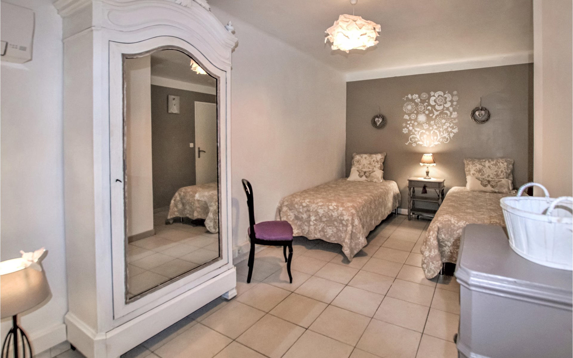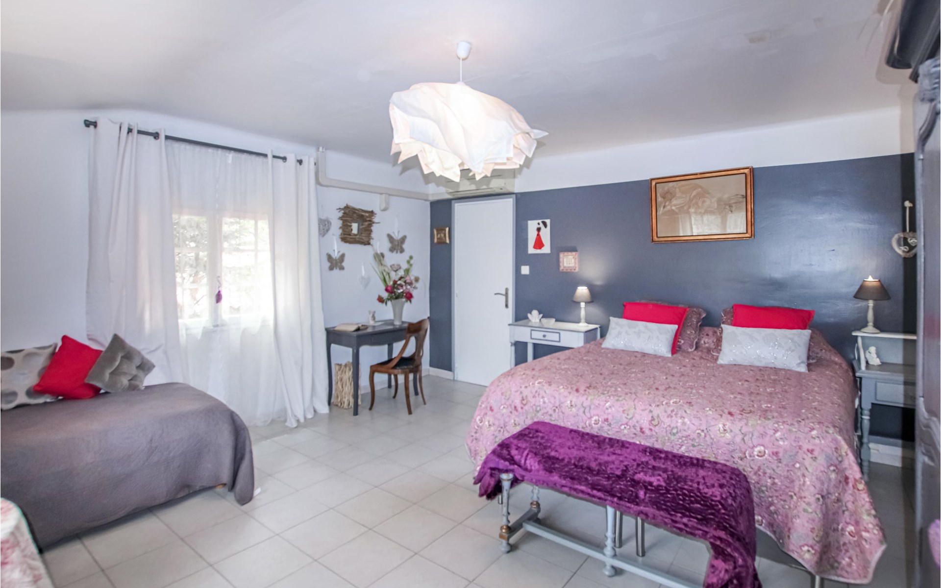 Located in Lançon-de-Provence near Aix-en-Provence, this typical Provençal house with pool invites you to a sun-drenched vacation in the Bouches du Rhône region. Relax on the large and pleasantly shaded terrace or sunbathe by the pool surrounded by lots of greenery. The stone poolhouse is equipped with a bar and a grill and is a nice place for socializing with your friends or in the bosom of the family. The spacious and modernly furnished interior also offers a relaxing ambience. Strolling through Lançon, you will discover beautiful old facades, great town villas and the 12th century Château des Seigneurs des Baux. Visit the charming village of Saint-Rémy-de-Provence, popular with celebrities and artists, which will also delight you with its colorful and lively farmers' market and fashionable stores. Holidaymakers interested in history should not miss the archaeological site of Glanum. In Les Baux-de-Provence, you can visit the Carrières de Lumières, a former quarry that is now the site of unique multimedia shows and exhibitions. A must-see is also Aix-en-Provence, with its plane-lined Cours Mirabeau boulevard for strolling and shopping. Museums, churches and fountains underline the charm of this culturally rich city, which is also appreciated for its celebration of opera and classical music. Marseille impresses with its old harbor and also attracts visitors with the Museum of European and Mediterranean Civilizations, the Villa Méditerranée and, last but not least, the Basilica Notre-Dame-de-la-Garde towering high above the city. Cross over from Marseille to the Frioul Islands off the coast, where you can visit, among other things, the Château d'If. With this magnificent vacation home with pool, your vacation in the department of Bouches du Rhône will long remain in beautiful memory. Please note: All bedrooms and the 2nd bathroom are accessible via an external staircase.