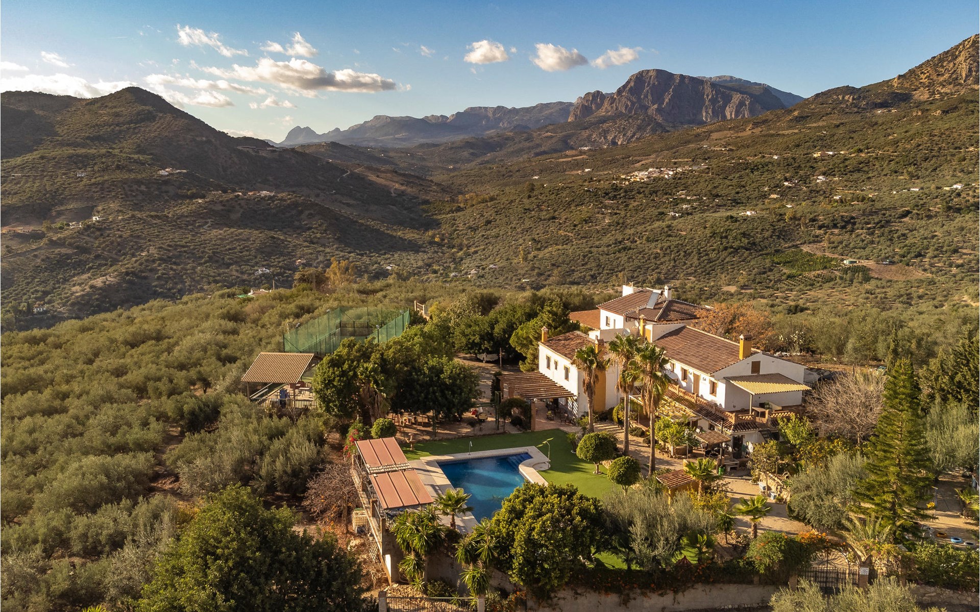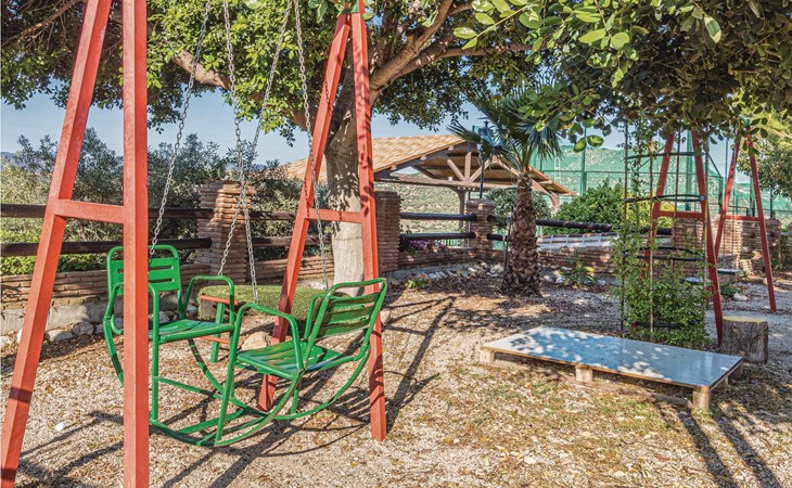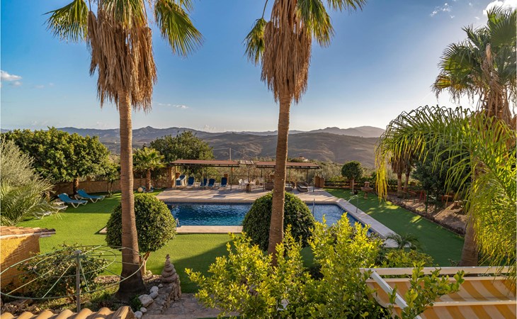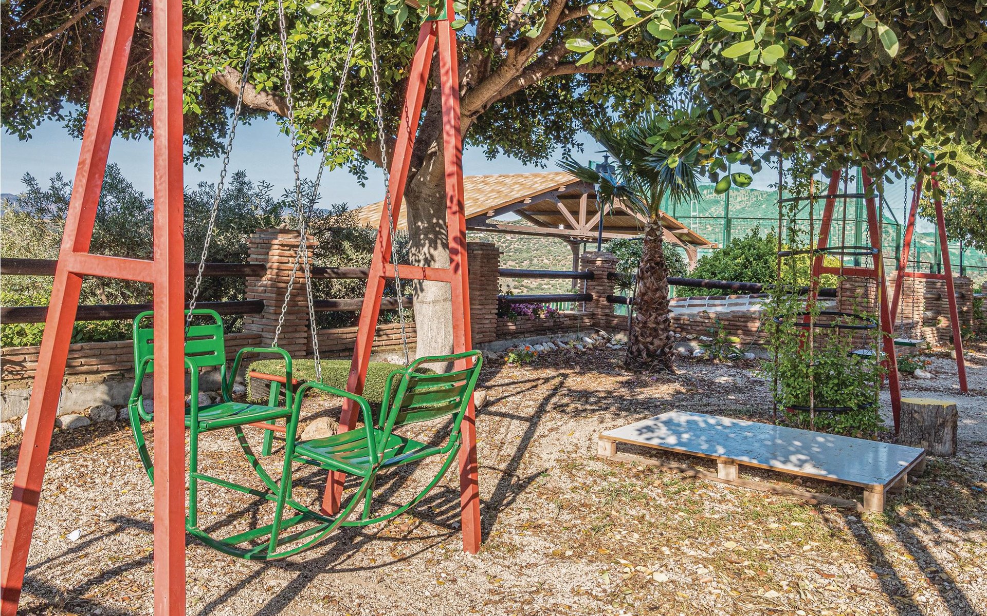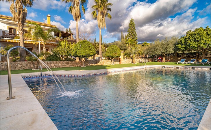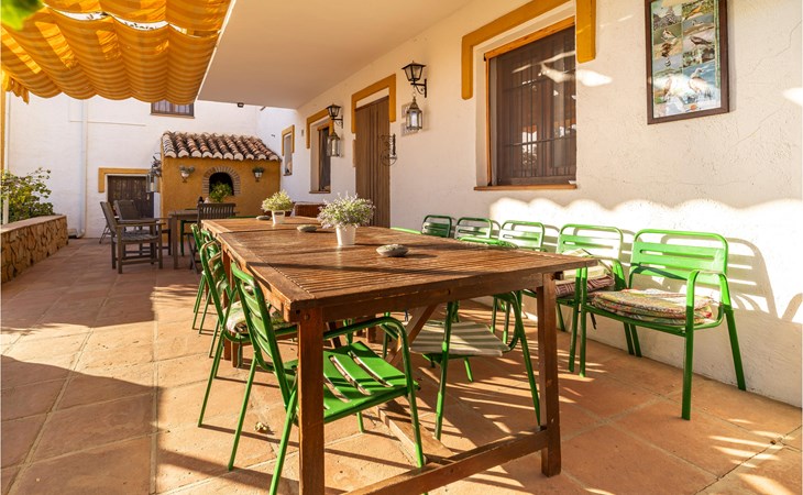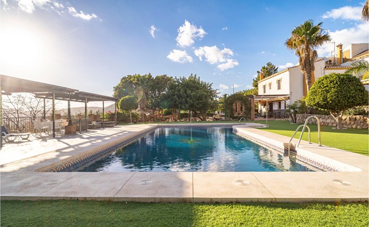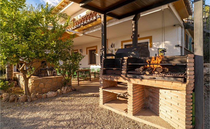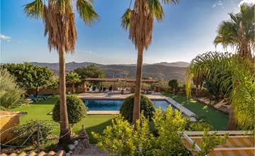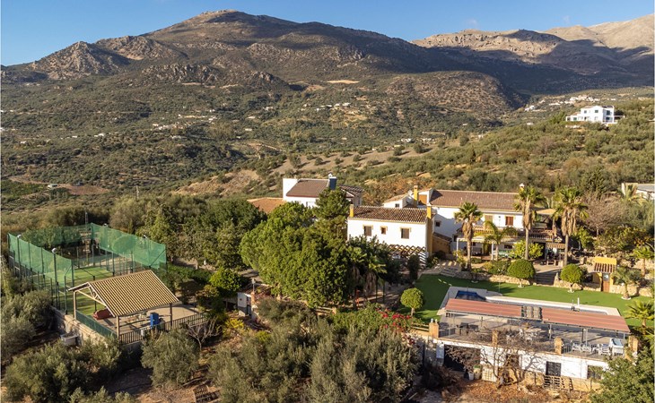 The holiday complex "Cortijo Casa Rural Los Tulipanes" in Periana, for 18 people, consists of 3 houses with a capacity for 6 people each and a total of 5 parking spaces. Each house consists of 3 bedrooms with air conditioning, living room with fireplace and integrated kitchen, bathroom and toilet. So that the family can meet and enjoy meals together, the establishment has a large living room with a fully equipped professional kitchen and 3 barbecues along the terraces. In addition, the little ones can enjoy the numerous swings and slides located next to the magnificent and large private pool. The pool is equipped with a water jet with 4 outlets that can be used for pleasant massages. On one of the covered terraces, you can enjoy the excellent temperatures of the region. On the property there is a playground with a basketball hoop, a giant chessboard and, for sports enthusiasts, an impeccable paddle court. The place offers breathtaking views of the La Viñuela reservoir, about 15 minutes away by car, a beautiful "natural" environment where you can kayak, fish or spend an unforgettable day in its magnificent facilities at certain times of the year. Cortijo Casa Rural Los Tulipanes is in a privileged location where you can enjoy a great coastal climate, despite its inland location. The beaches of Torre del Mar on the Costa del Sol are only 30 minutes away. Here you will also find the beautiful Baviera golf course, ideal for lovers of this sport. Via the motorway you can visit places of interest such as Nerja, Frigiliana, Torrox or the coastal capital and cultural city of Málaga, with an inexhaustible range of tourist services.