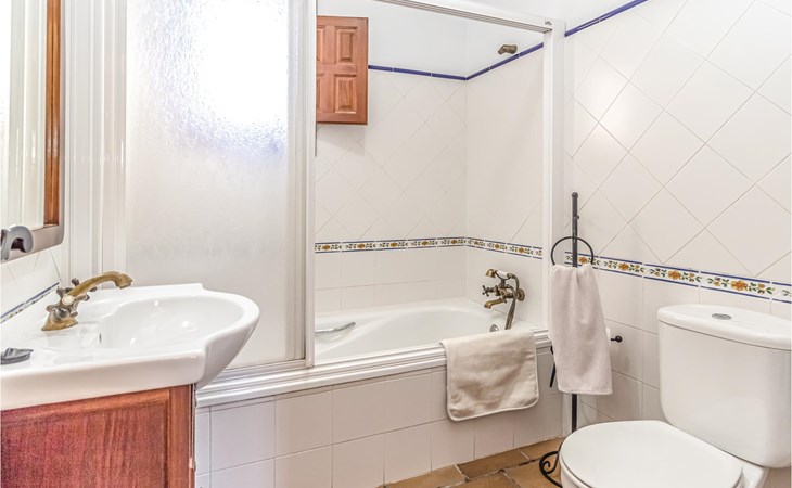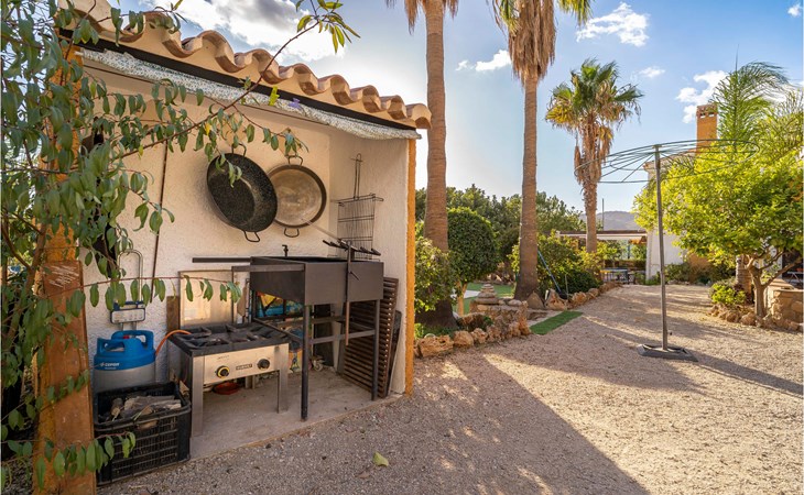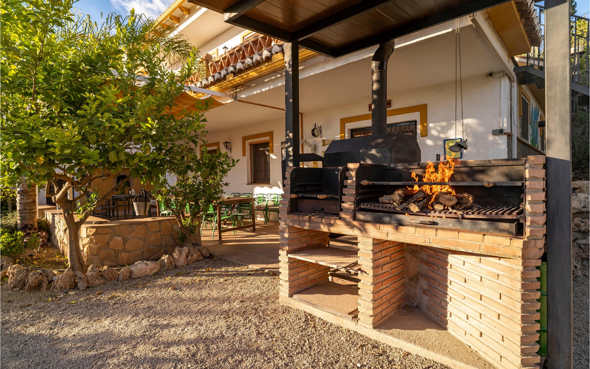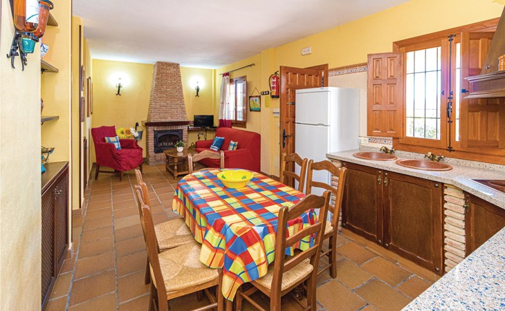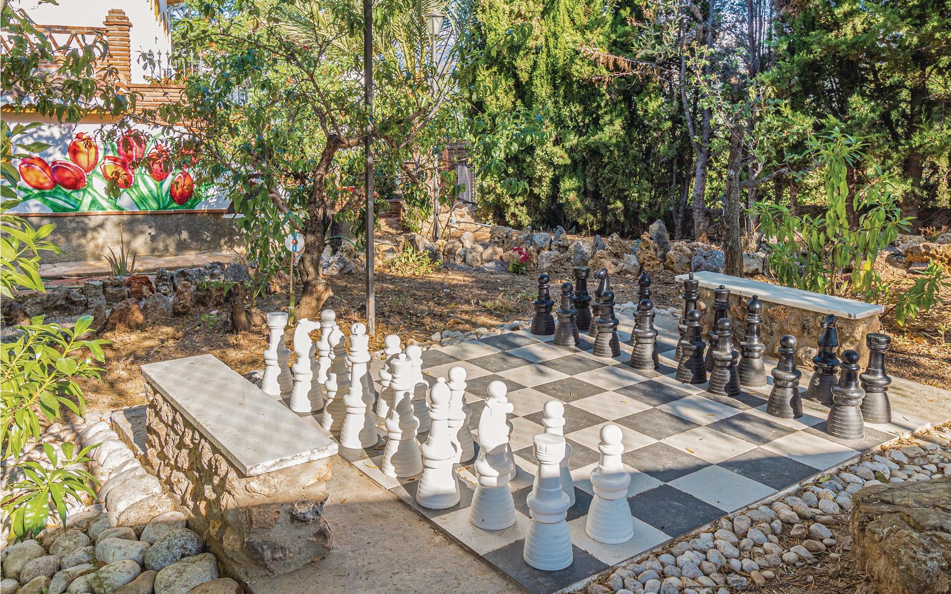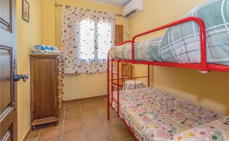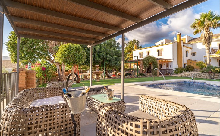 The holiday complex "Cortijo Casa Rural Los Tulipanes" in Periana, for 18 people, consists of 3 houses with a capacity for 6 people each and a total of 5 parking spaces. Each house consists of 3 bedrooms with air conditioning, living room with fireplace and integrated kitchen, bathroom and toilet. So that the family can meet and enjoy meals together, the establishment has a large living room with a fully equipped professional kitchen and 3 barbecues along the terraces. In addition, the little ones can enjoy the numerous swings and slides located next to the magnificent and large private pool. The pool is equipped with a water jet with 4 outlets that can be used for pleasant massages. On one of the covered terraces, you can enjoy the excellent temperatures of the region. On the property there is a playground with a basketball hoop, a giant chessboard and, for sports enthusiasts, an impeccable paddle court. The place offers breathtaking views of the La Viñuela reservoir, about 15 minutes away by car, a beautiful "natural" environment where you can kayak, fish or spend an unforgettable day in its magnificent facilities at certain times of the year. Cortijo Casa Rural Los Tulipanes is in a privileged location where you can enjoy a great coastal climate, despite its inland location. The beaches of Torre del Mar on the Costa del Sol are only 30 minutes away. Here you will also find the beautiful Baviera golf course, ideal for lovers of this sport. Via the motorway you can visit places of interest such as Nerja, Frigiliana, Torrox or the coastal capital and cultural city of Málaga, with an inexhaustible range of tourist services.