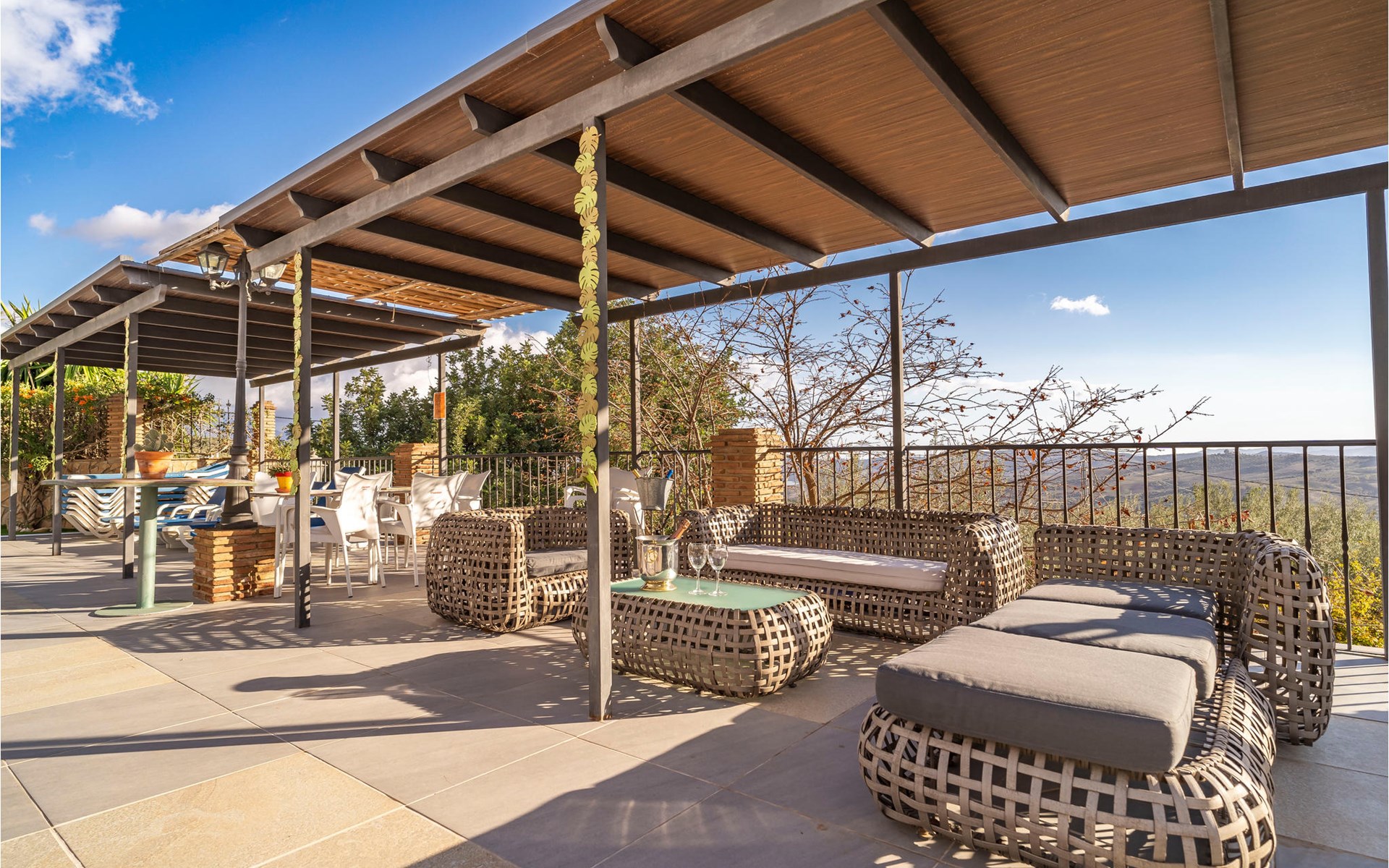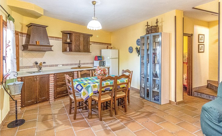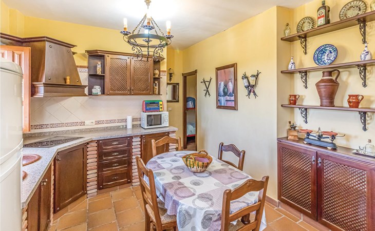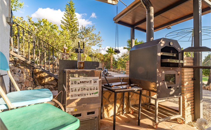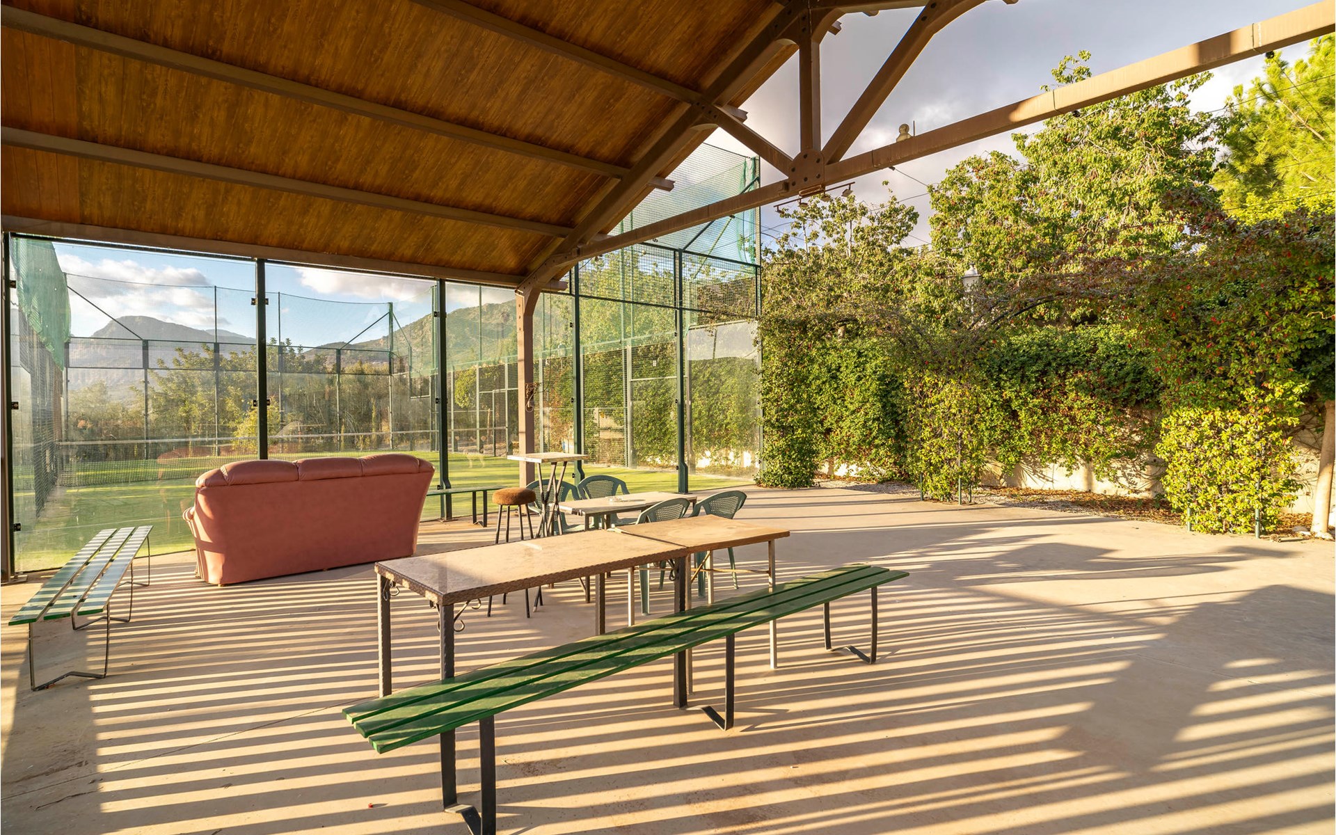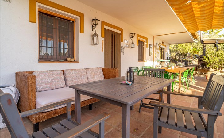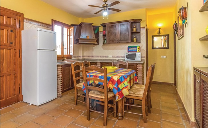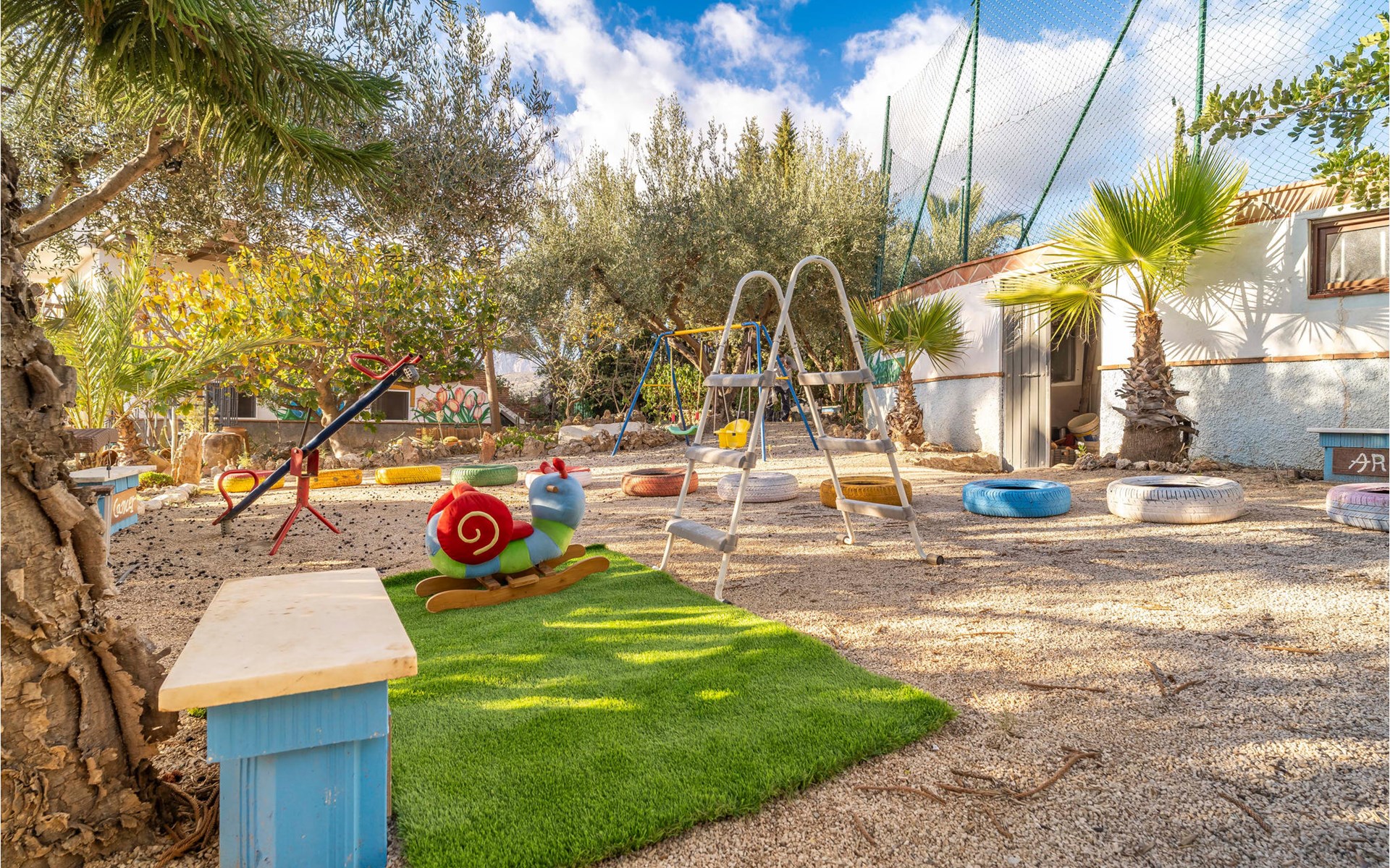 The holiday complex "Cortijo Casa Rural Los Tulipanes" in Periana, for 18 people, consists of 3 houses with a capacity for 6 people each and a total of 5 parking spaces. Each house consists of 3 bedrooms with air conditioning, living room with fireplace and integrated kitchen, bathroom and toilet. So that the family can meet and enjoy meals together, the establishment has a large living room with a fully equipped professional kitchen and 3 barbecues along the terraces. In addition, the little ones can enjoy the numerous swings and slides located next to the magnificent and large private pool. The pool is equipped with a water jet with 4 outlets that can be used for pleasant massages. On one of the covered terraces, you can enjoy the excellent temperatures of the region. On the property there is a playground with a basketball hoop, a giant chessboard and, for sports enthusiasts, an impeccable paddle court. The place offers breathtaking views of the La Viñuela reservoir, about 15 minutes away by car, a beautiful "natural" environment where you can kayak, fish or spend an unforgettable day in its magnificent facilities at certain times of the year. Cortijo Casa Rural Los Tulipanes is in a privileged location where you can enjoy a great coastal climate, despite its inland location. The beaches of Torre del Mar on the Costa del Sol are only 30 minutes away. Here you will also find the beautiful Baviera golf course, ideal for lovers of this sport. Via the motorway you can visit places of interest such as Nerja, Frigiliana, Torrox or the coastal capital and cultural city of Málaga, with an inexhaustible range of tourist services.