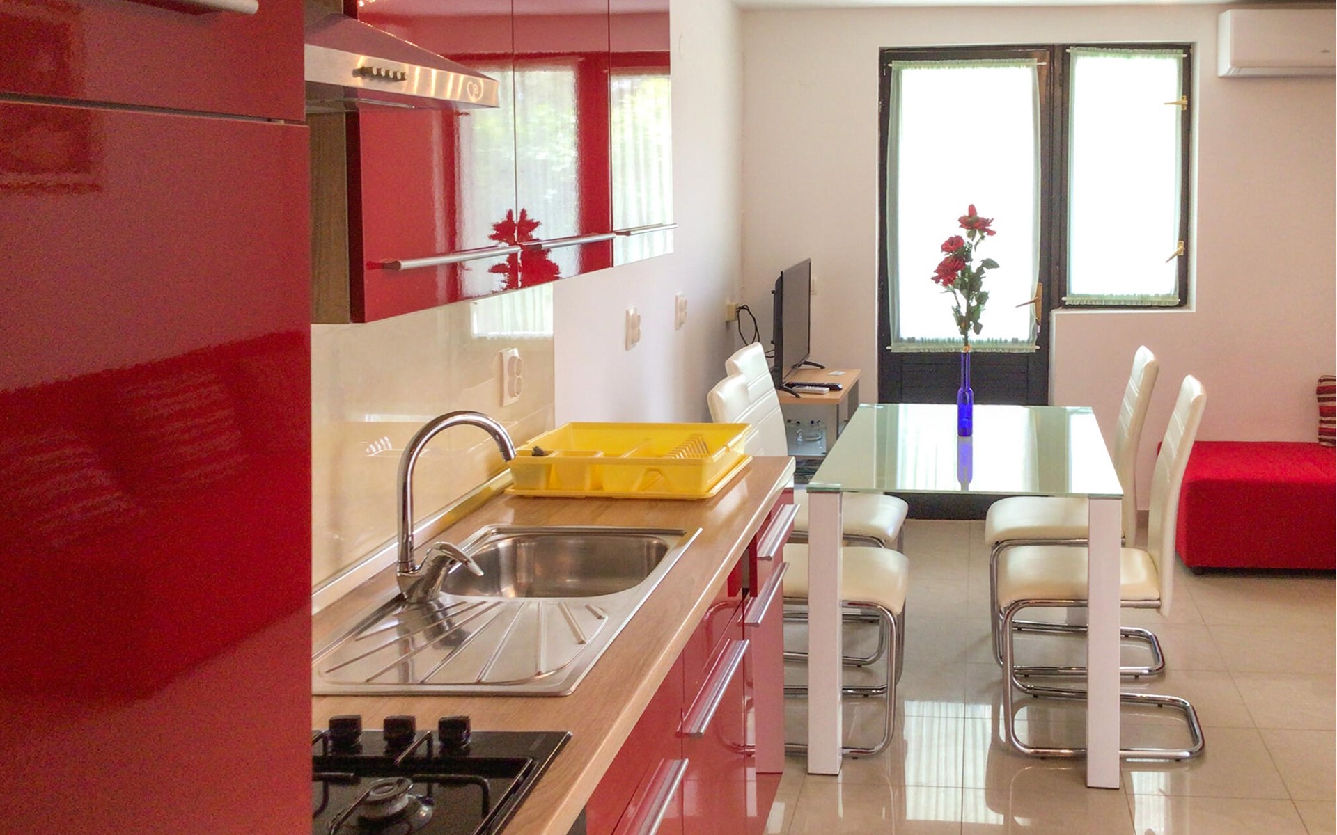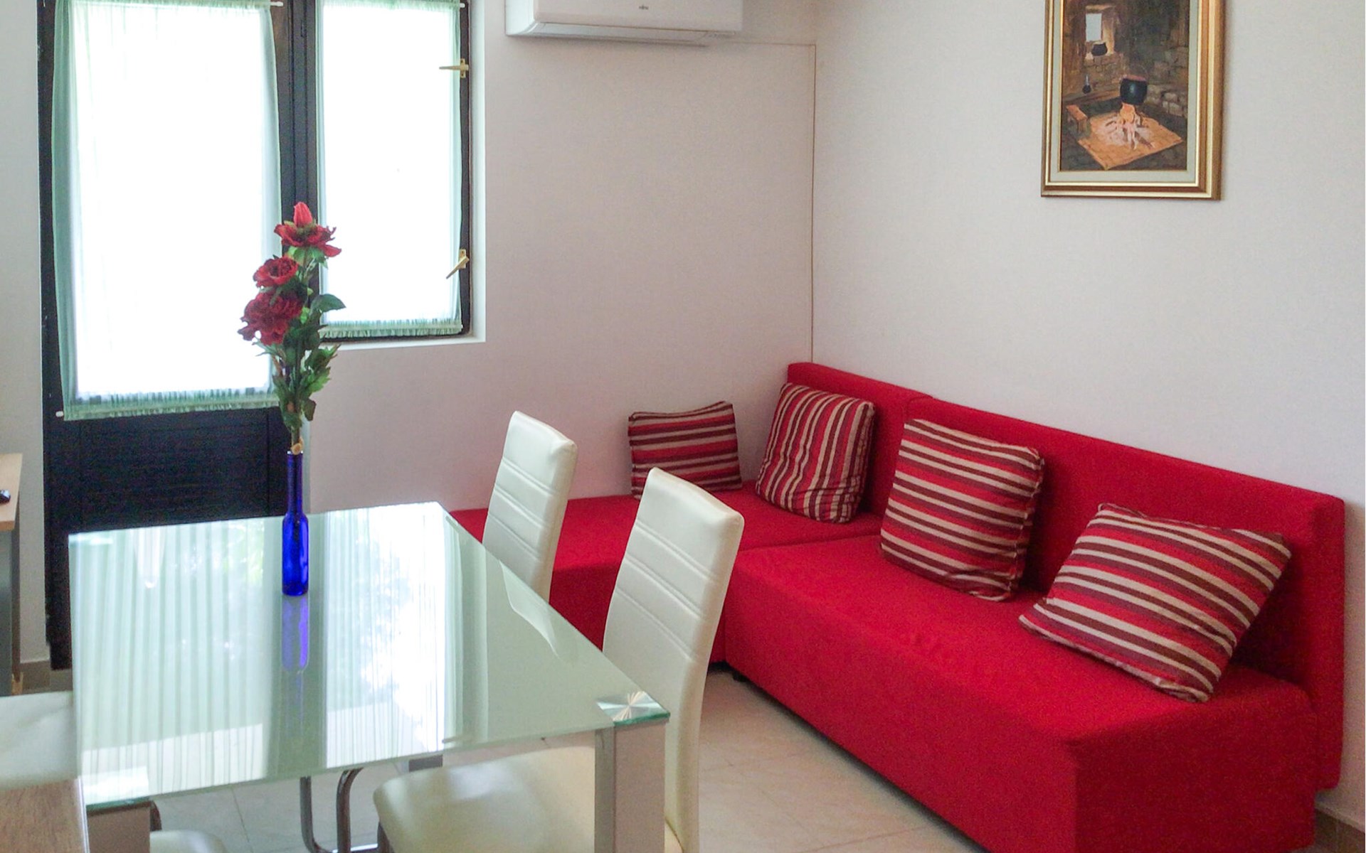 Located in a quiet neighbourhood and surrounded by lush Mediterranean vegetation, this modern flat offers you a peaceful retreat just a few steps from the beach. Start the day with a hearty breakfast, pack some goodies for a romantic beach picnic and end a long day in the sun with a board game or a quiet read in the seaside village of Artatore, near the centre of Mali Loinj.