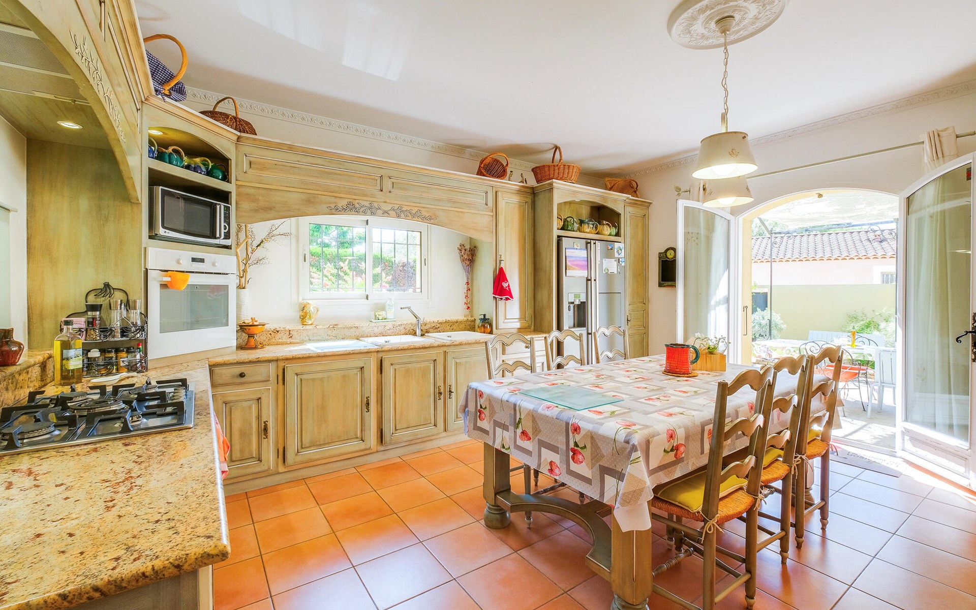 Located in Mallemort, this vacation home with space for up to seven people invites you to a great vacation in the south of France. The comfort of the house includes a terrace on both sides, and in the well-kept garden there is a vegetable garden and a small chicken yard. Several French doors provide ample sunlight in the living room and kitchen. Upstairs, two bedrooms share a bathroom. A third bedroom upstairs has its own en suite bathroom. A sleeping alcove with a bed for one person can be made up in the living room. The driveway and outdoor area at the rear of the house are shared with the permanent tenant, who occupies an otherwise separate part of the house. The tenant is not present in the month of August. The landlords occupy a cottage at the end of the garden, but are not home during the day. The terrace, garden and pool are at everyone's disposal. The charming village of Mallemort attracts with a Provencal market and an old bell tower. 400 meters from the house you can take beautiful walks along the Durance River, and 4 km away golfers will find their luck at the Golf de Pont Royal. A 20-minute drive separates you from Salon-de-Provence as well as La Barben, with its zoo and impressive castle. Avignon and Aix-en-Provence are within a 40-minute drive, and the Mediterranean Sea with its beautiful rocky coves and great beaches is only an hour away. Look forward to many wonderful excursions in the sun-drenched Mediterranean.