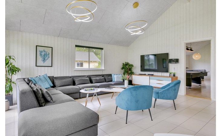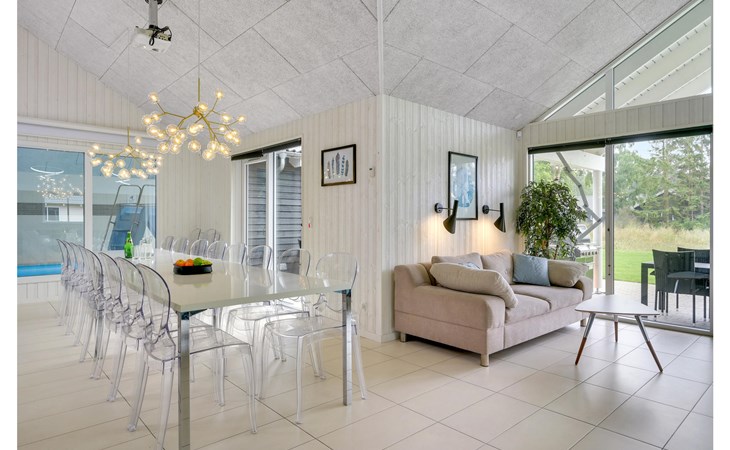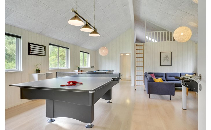 This comfortable house promises you a holiday in a class of its own. Lots of warm daylight floods in through a large glass front, while you can enjoy a beautiful view of the green garden outside. Make yourself comfortable on the large sofa area with a cup of coffee or spend an enjoyable games evening here. If you prefer something more sporty, swim a lap in the indoor pool or play table tennis. Afterwards, enjoy relaxing hours in the whirlpool or sauna.
