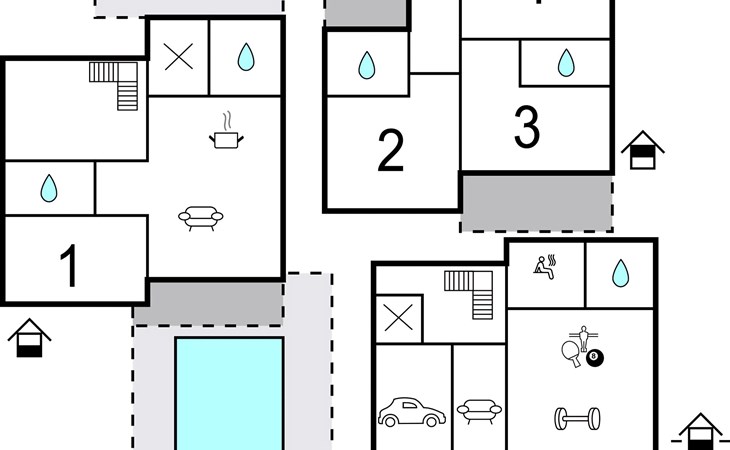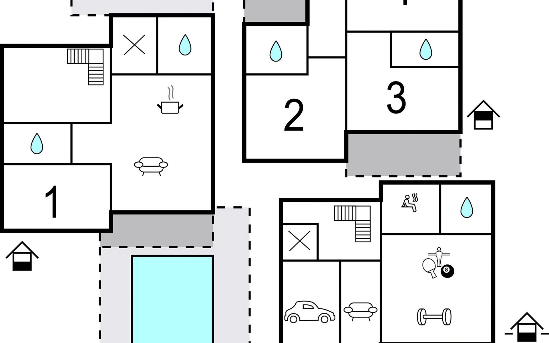 The open and light-flooded living room, extended by a large balcony, is the perfect space for your socializing, cooking fun and communal meals. The sporty aspect of your vacation should not be missing? Then you have in your own fitness room with sauna, the right space for it. A separate recreation area with billiards and table football rounds off the offer for you.