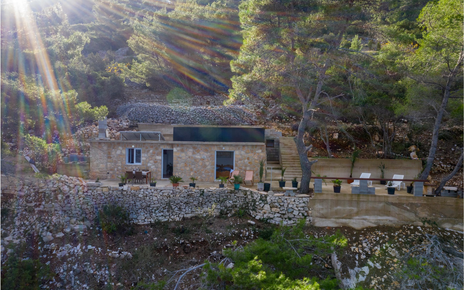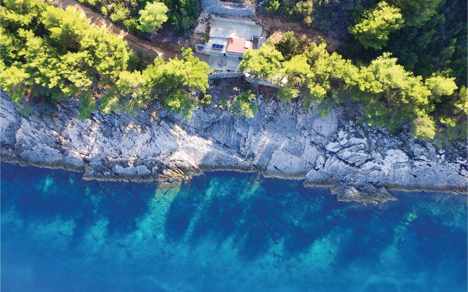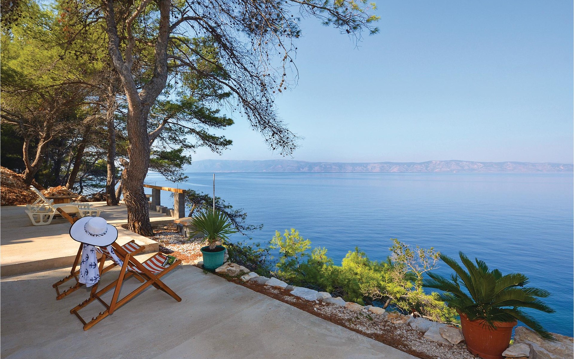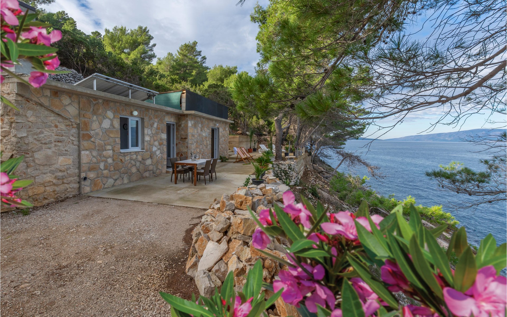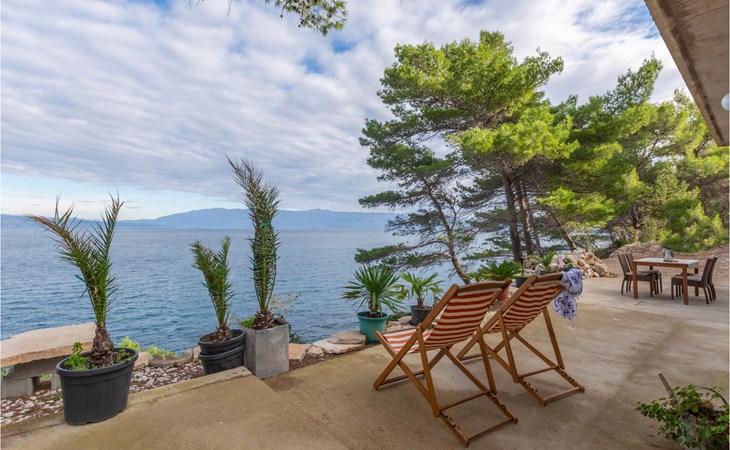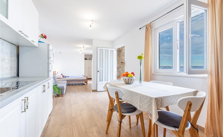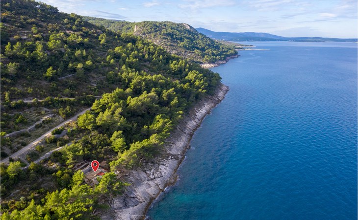 Spend your holiday in a Mediterranean ambience and with a wonderful view of the sea. This functional holiday home consists of a room with a kitchen and indoor fireplace, as well as a combination living area with a double bed and a bathroom. The spacious terrace is perfect for cosy evenings. The beautiful Zeja bay is about 250 metres away. You can also discover the Vela Stiniva bay in the village of Zastraie. The water is drawn from the well and is not drinking water. Energy is obtained exclusively from solar panels, so the power supply is limited. Approximately 50 metres of the access road to the accommodation is unpaved.