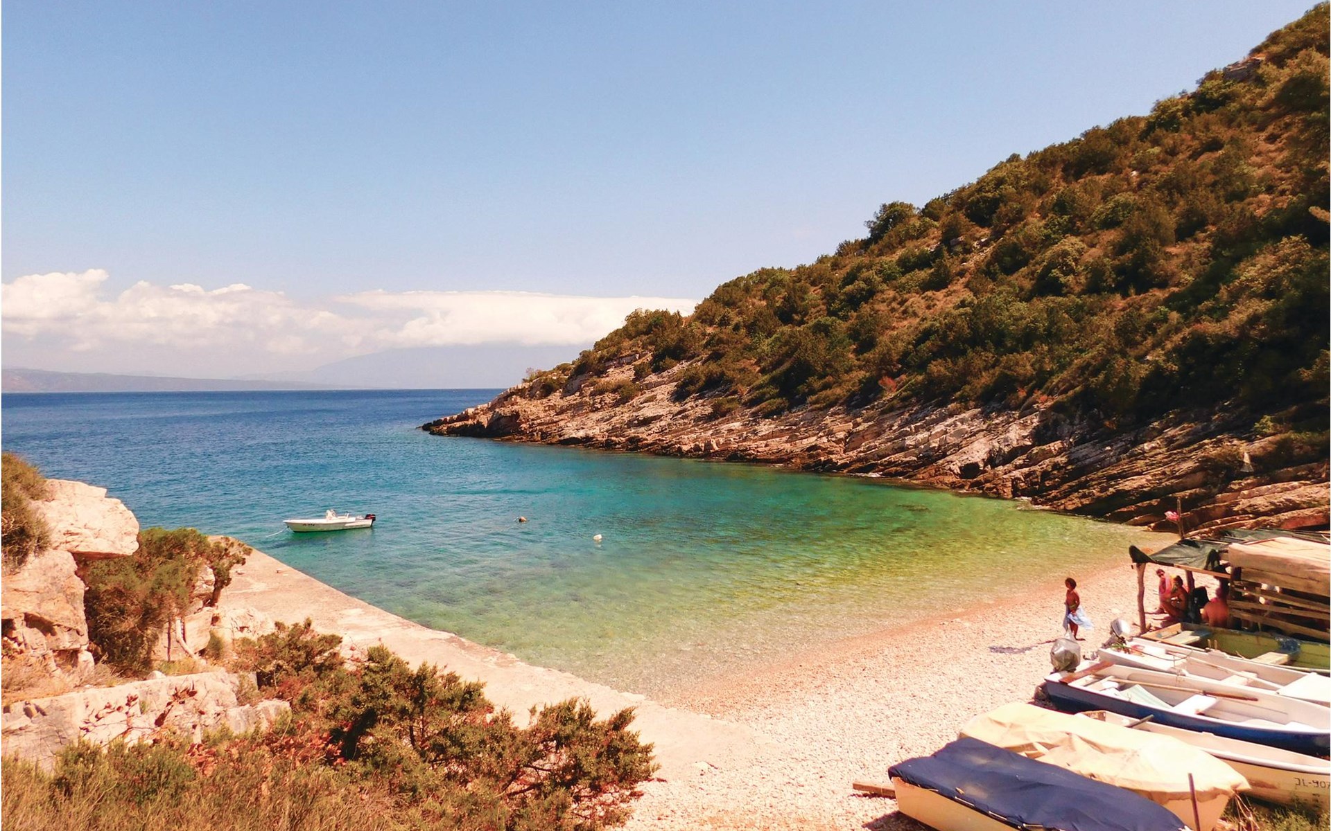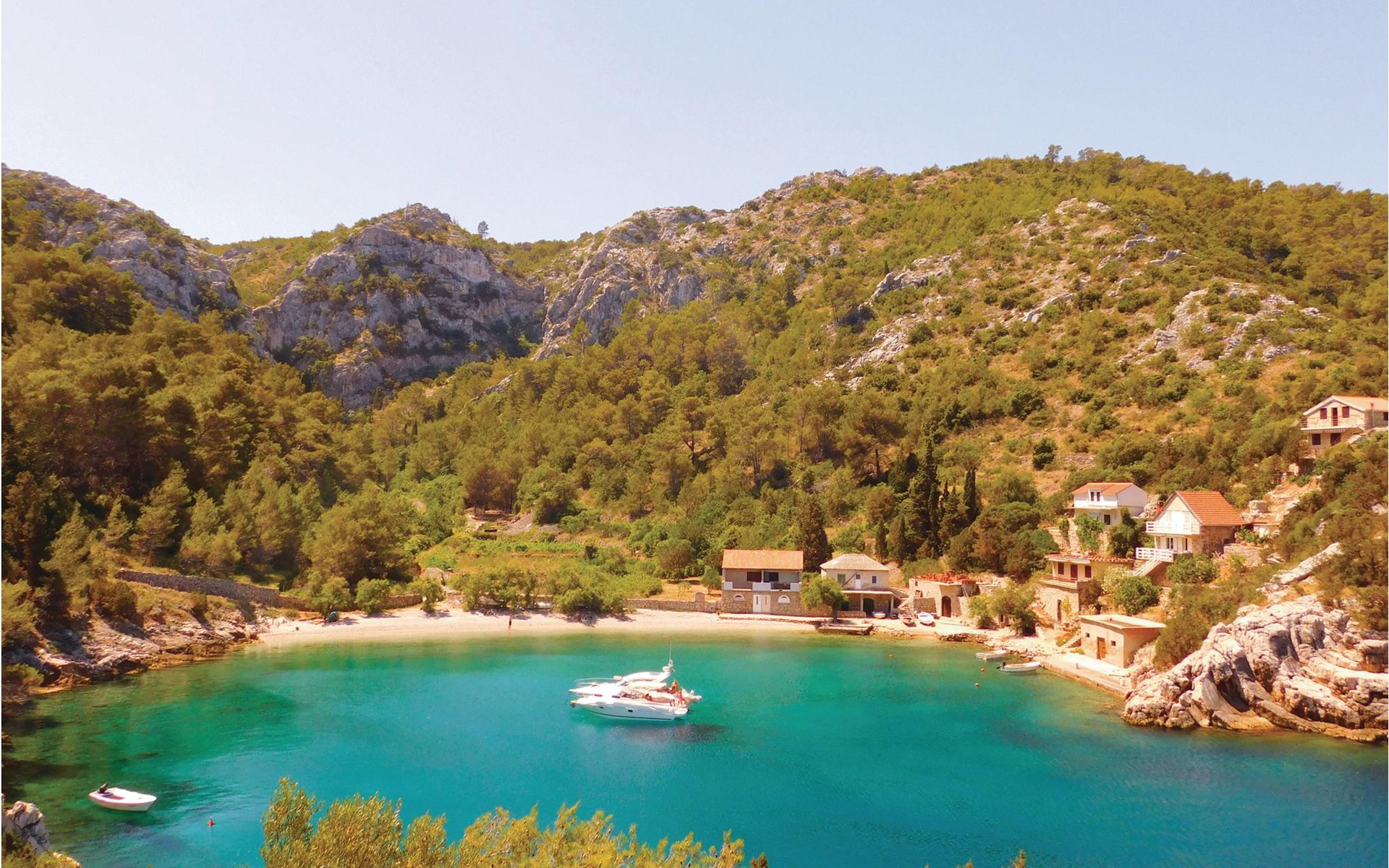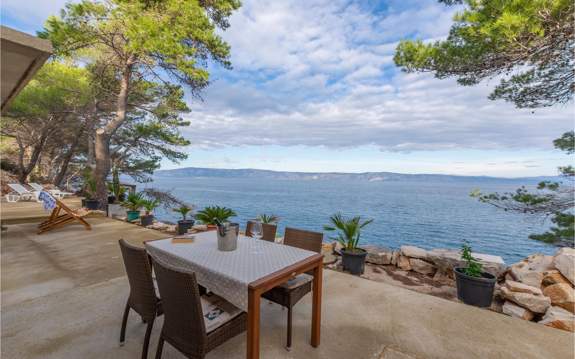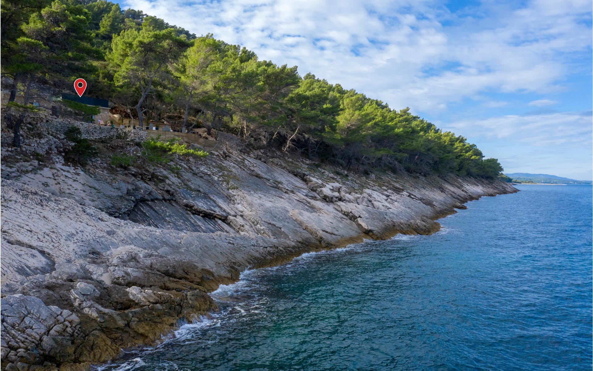 Spend your holiday in a Mediterranean ambience and with a wonderful view of the sea. This functional holiday home consists of a room with a kitchen and indoor fireplace, as well as a combination living area with a double bed and a bathroom. The spacious terrace is perfect for cosy evenings. The beautiful Zeja bay is about 250 metres away. You can also discover the Vela Stiniva bay in the village of Zastraie. The water is drawn from the well and is not drinking water. Energy is obtained exclusively from solar panels, so the power supply is limited. Approximately 50 metres of the access road to the accommodation is unpaved.