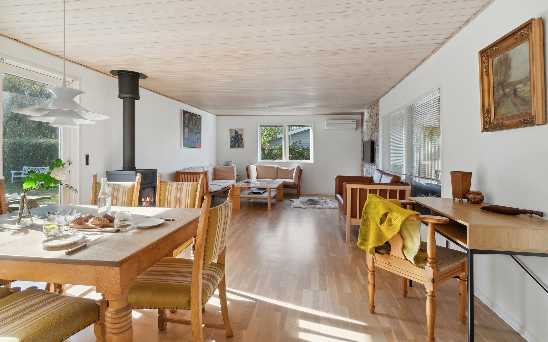 Spend a relaxing vacation in West Zealand with your family. The bright house offers you an appealing interior that will leave you wanting for nothing. Put your feet up and reorganize your thoughts and enjoy some well-deserved time off with your loved ones. Here you will find time to continue watching your favorite series in the evening while being warmed by a crackling fireplace. The conservatory is also a great place to have game nights together while enjoying the view of the garden. There you can also enjoy the sunny hours of the day and play with your children or barbecue together.