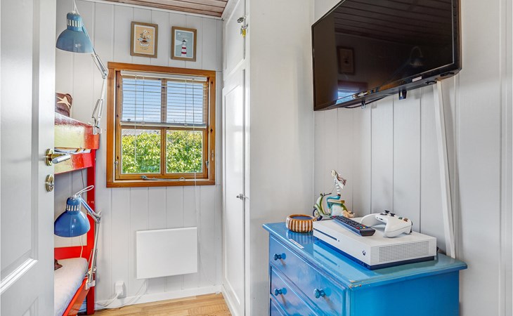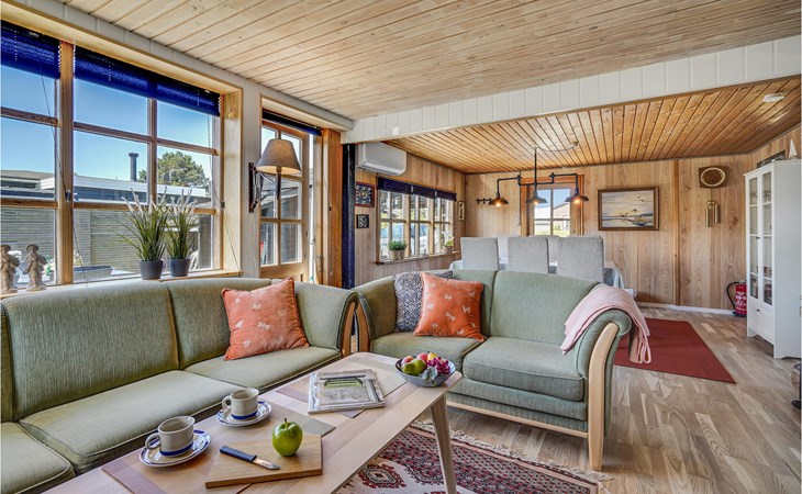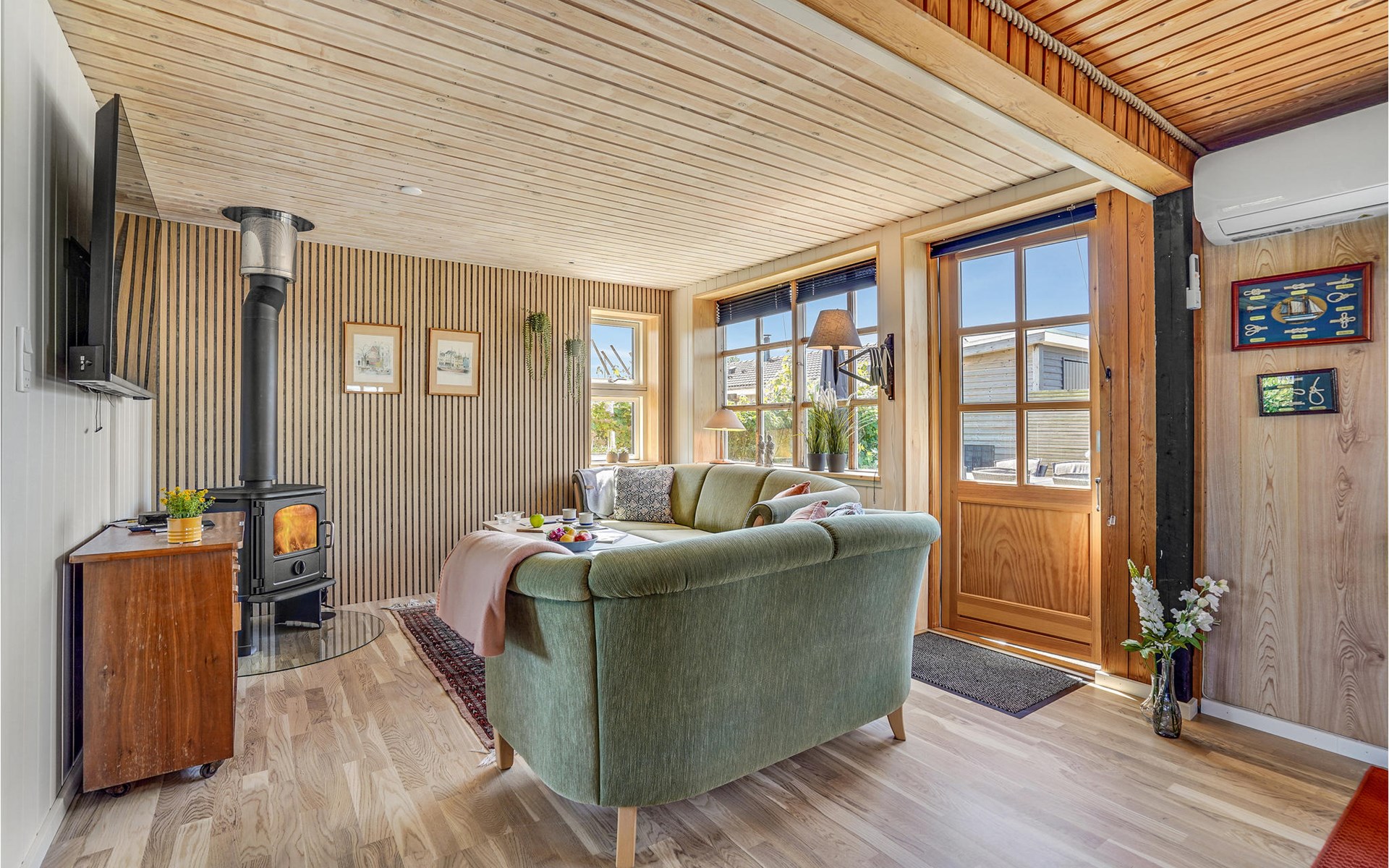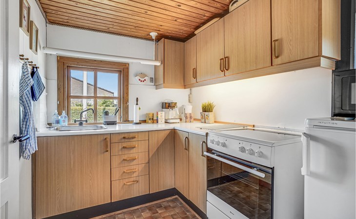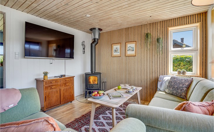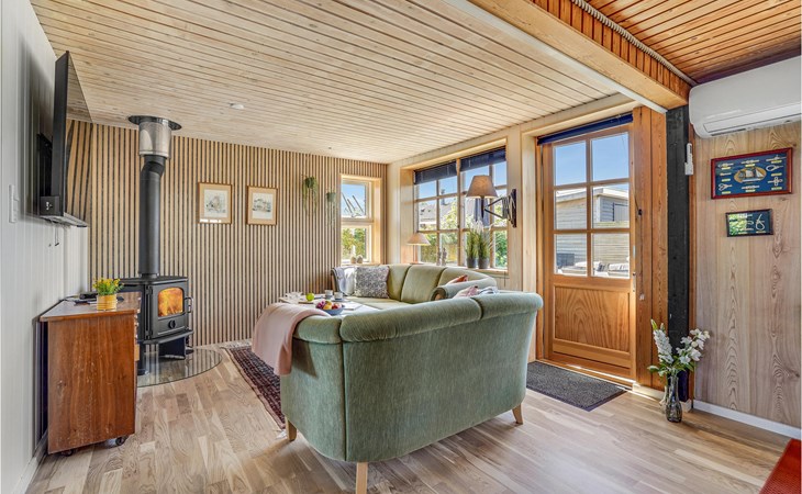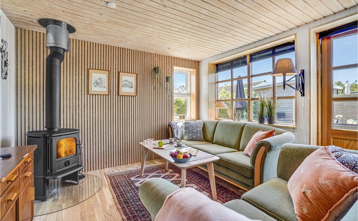 Just a few steps from the beautiful sandy beach on the Great Belt you will find this authentic vacation home, perfect for a couple or a small family. Your four-legged friends are also very welcome here. The pretty and atmospheric interior is characterized by wood and the interior is very bright because of the many windows. Spend many, sociable hours in the living room and warm yourself in front of the fireplacefer the cool season while listening to the crackling fire. Here you get real Danish hygge.