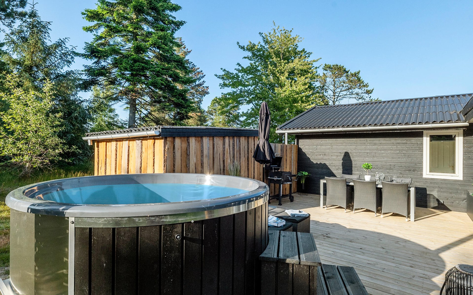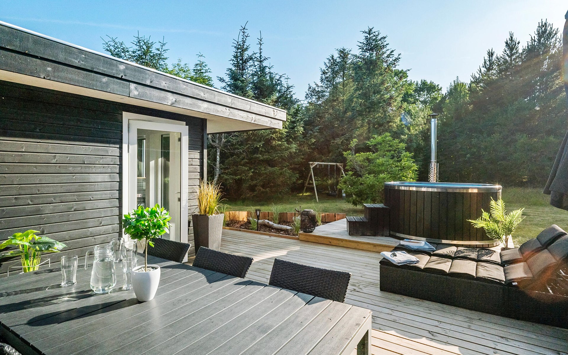 The cosy garden beckons with its extensive lawn and attractive play areas in the fresh air. Treat yourself to relaxing moments in the whirlpool on sunny days.