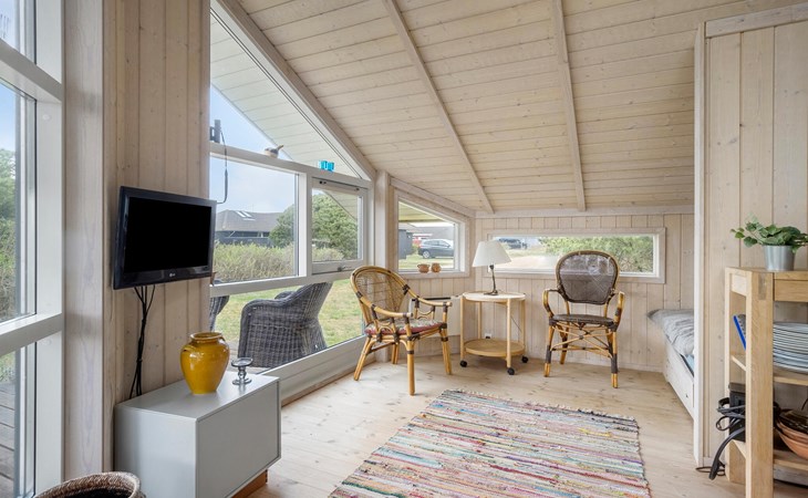 Let the light through the large window welcome you into the living room. Light a fire in the fireplace and feel how the warmth fills the room. Walk through the garden to the small studio, sit down to write, draw or simply to think and read. The wood panelling gives the house a warm, natural feel.
